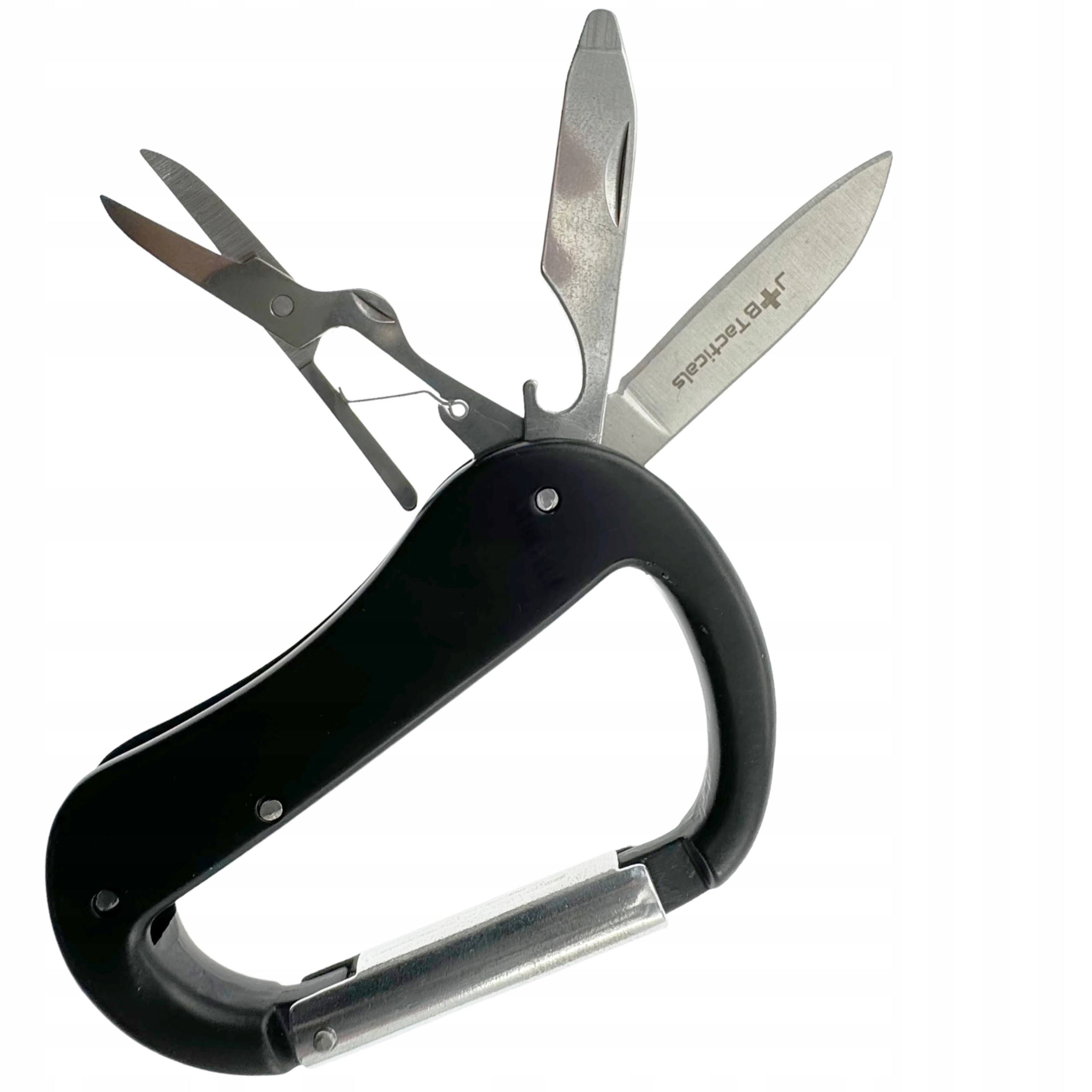 JB Tacticals Carabiner Нож карманный с ножницами MULTITOOL 6in1 Нож JB-07 BLK