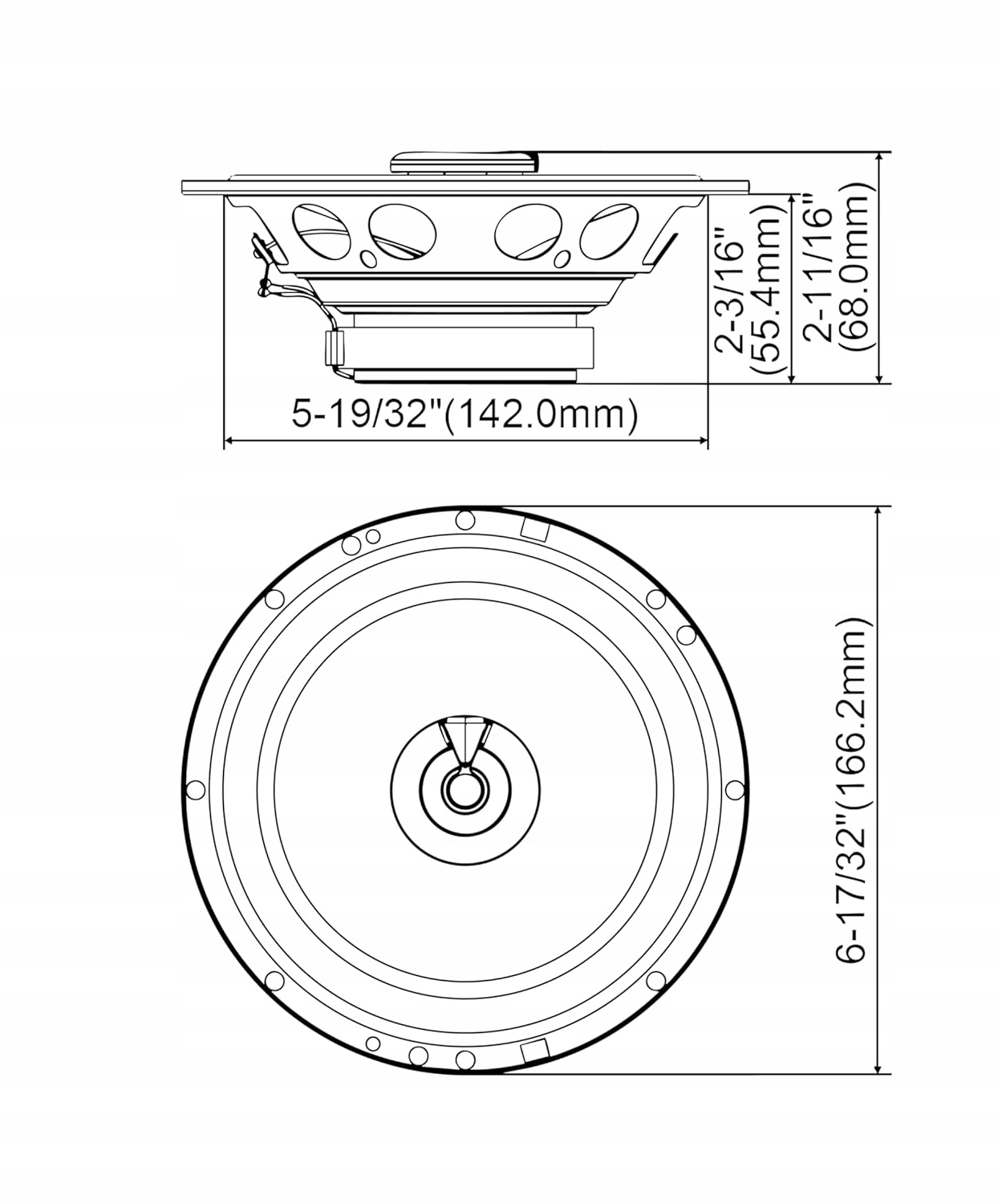 - Диаметр: 6,5 дюйма / 16,5 см / 165 мм.