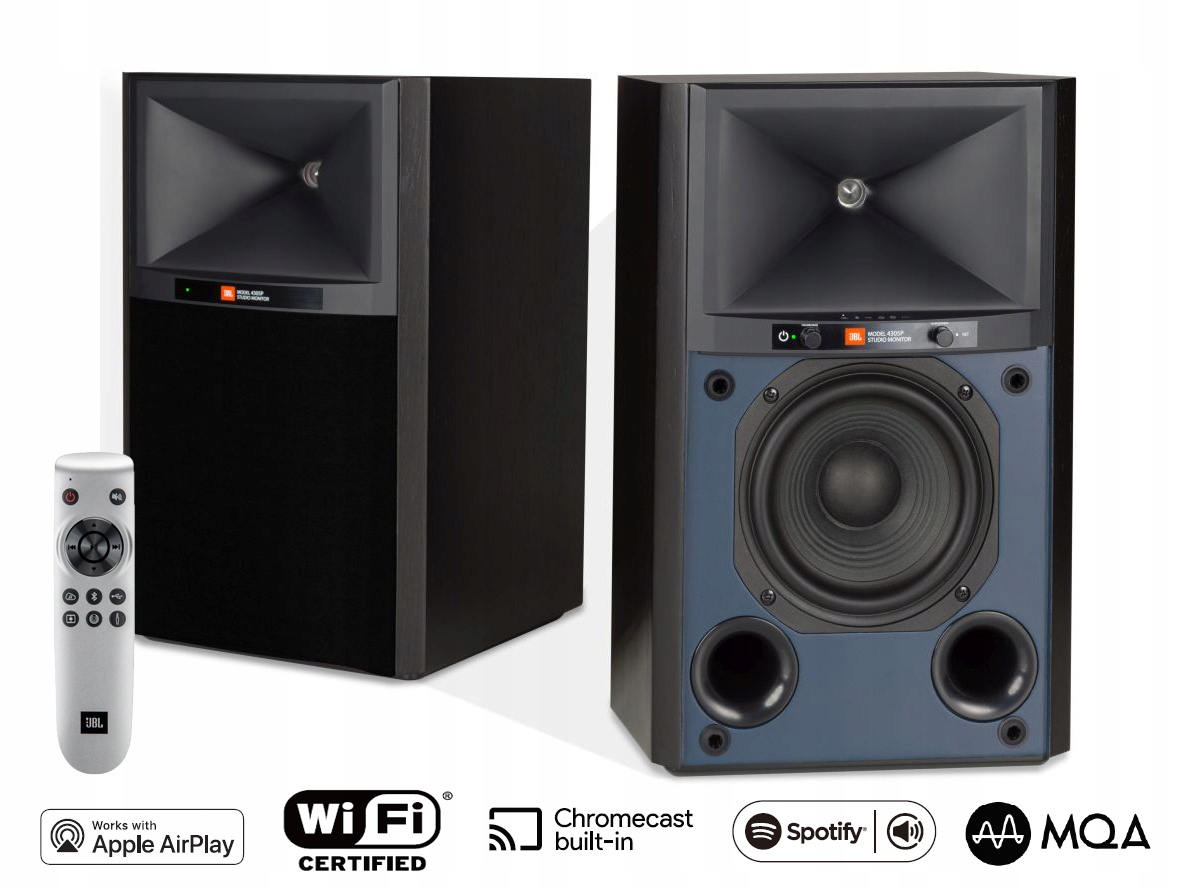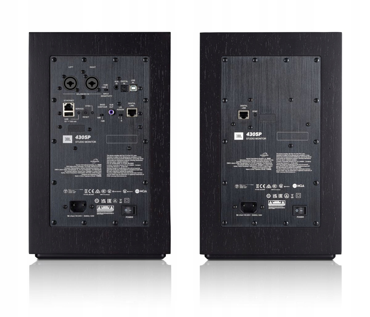 JBL 4305P — это высокопроизводительные полочные громкоговорители с активным питанием и запатентованным компрессионным драйвером диаметром 1 дюйм (25 мм) и рупором High-Definition Imaging. Общая мощность системы составляет 300 Вт.Комплект оснащен цифро-аналоговым преобразователем высокого разрешения 24 бит/192 кГц. Встроенный Google Chromecast, Apple AirPlay 2 и беспроводное аудио Bluetooth. Асинхронные цифровые входы USB, оптический Toslink и аналоговые входы XLR/6,3 мм TRS и разъем 3,5 мм. Мониторы доступны с отделкой из мебельного шпона натурального ореха или черного ореха. В комплект входит беспроводной пульт дистанционного управления, также у пользователя есть приложение MusicLife для управления.