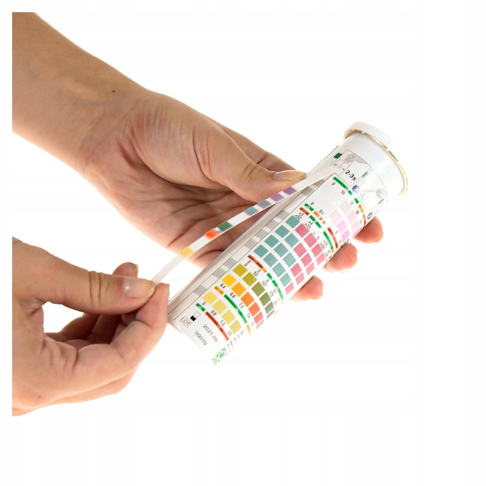 Встряхивайте тест-полоску в воде в течение 2–3 секунд. Удаление тест-полоски. Горизонтальное капание воды. Сравнение через 1 минуту: Тест-полоски с цветовой шкалой на упаковке. Чтение значения CO2 в таблице.
