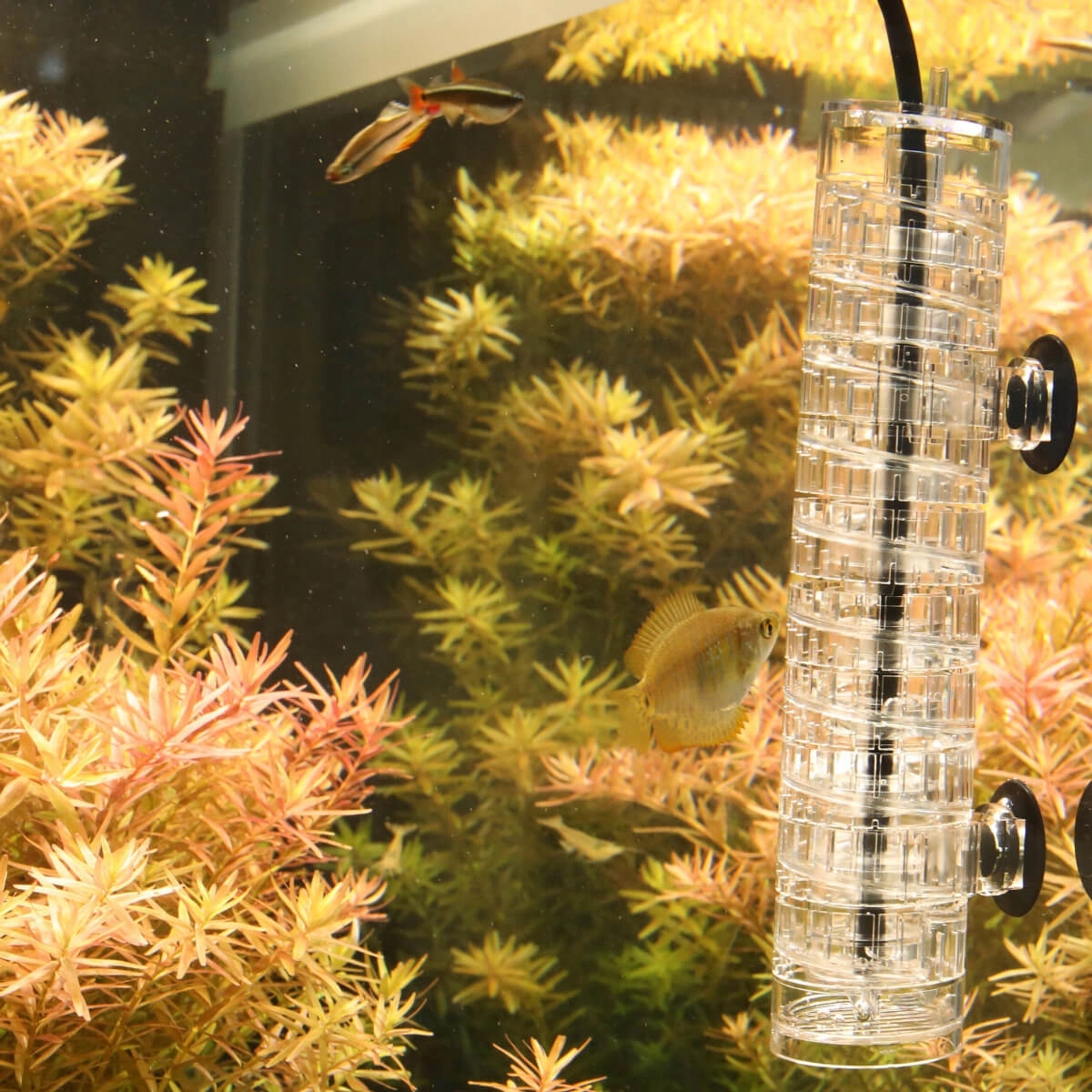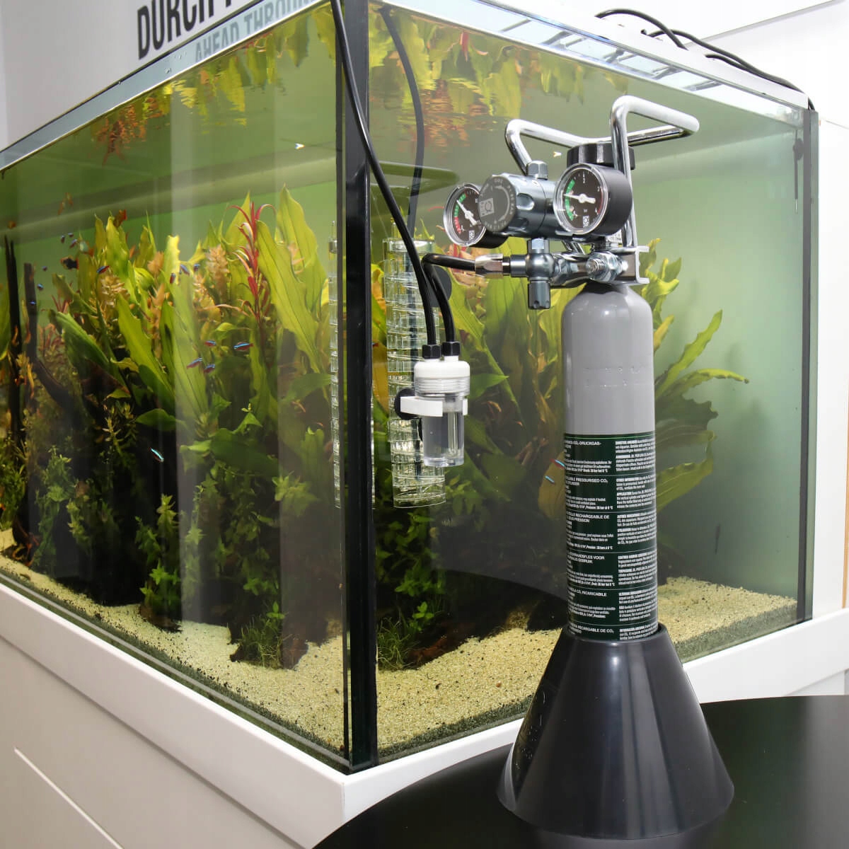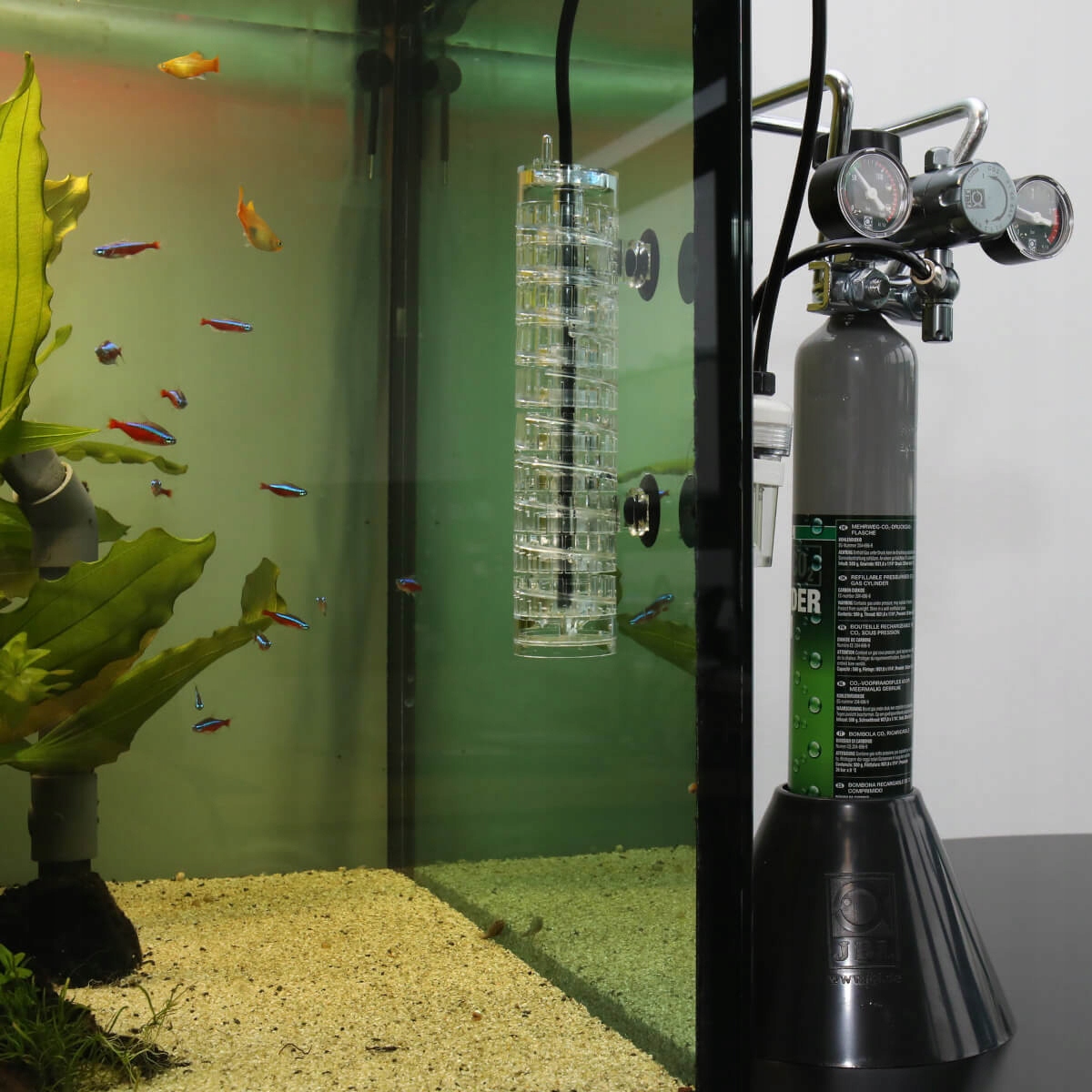 Цвет и степень прозрачности корпуса эффективно предотвращают появление водорослей внутри диффузора. Устройство дополнено небольшим колоколом для предотвращения потерь CO2.