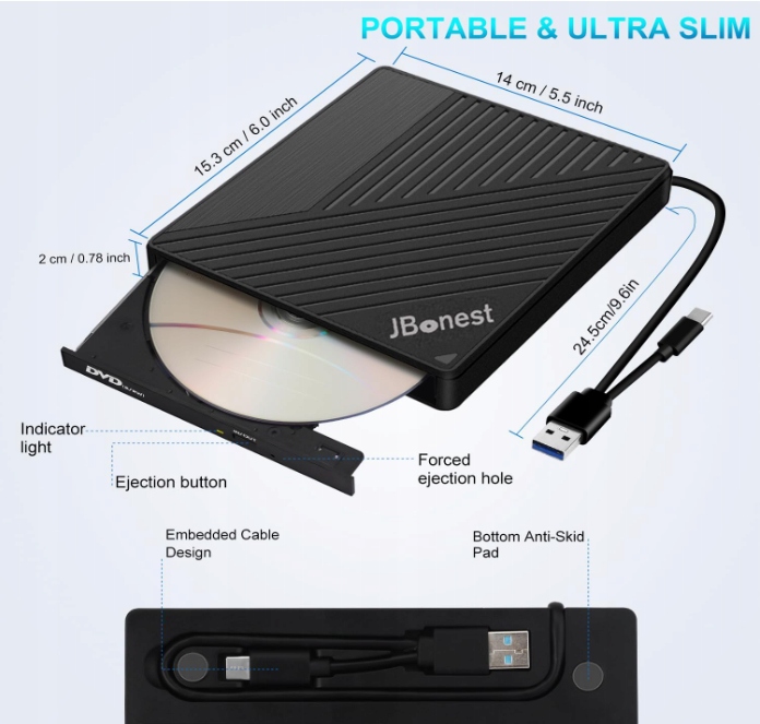 Jbonest DVD/CD USB 3.0 и регистратор Type-C с SD/TF Reader Reader