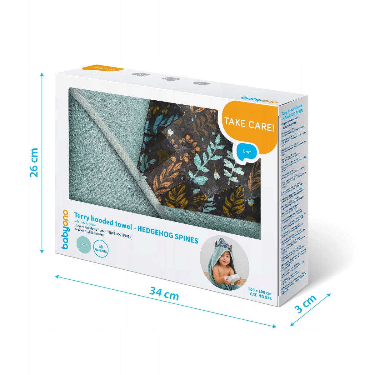 Мягкий халат HEDGEHOG SPINES с 3D элементами - кроличьи ушки - упакован в декоративную коробочку, обеспечит комфорт чувствительным людям кожа маленького ребенка после купания. Чехол очень хорошо впитывает влагу и защищает ребенка от холода.