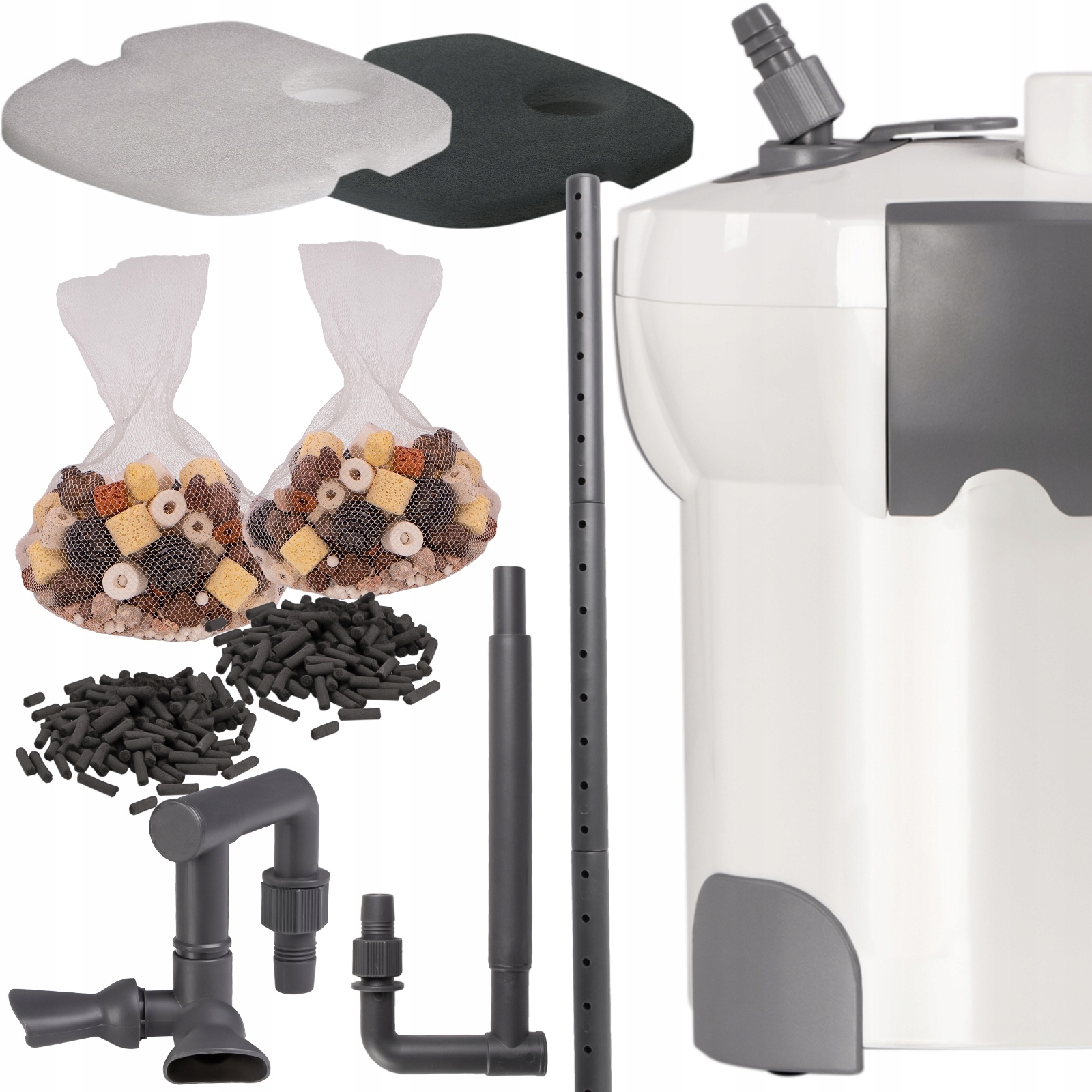Внешний фильтр, ведро с УФ -лампой для пресноводного аквариума. Набор имеет фильтр, вставки фильтров, керамика, необеривая ткань и аквариум. Набор также включает в себя набор шлангов входа и розетки - дождевой душ и двойную локальную розетку. Внешний аквариумный фильтр JECOD тихи, энергия и надежна. Он будет успешно обрабатывать аквариум 200 л, 350 л и даже 400L.