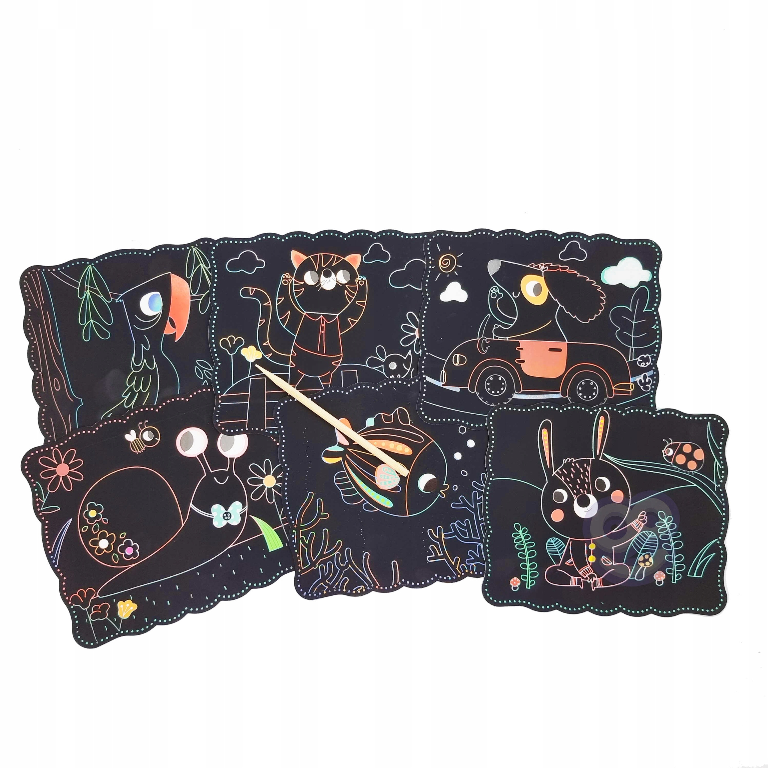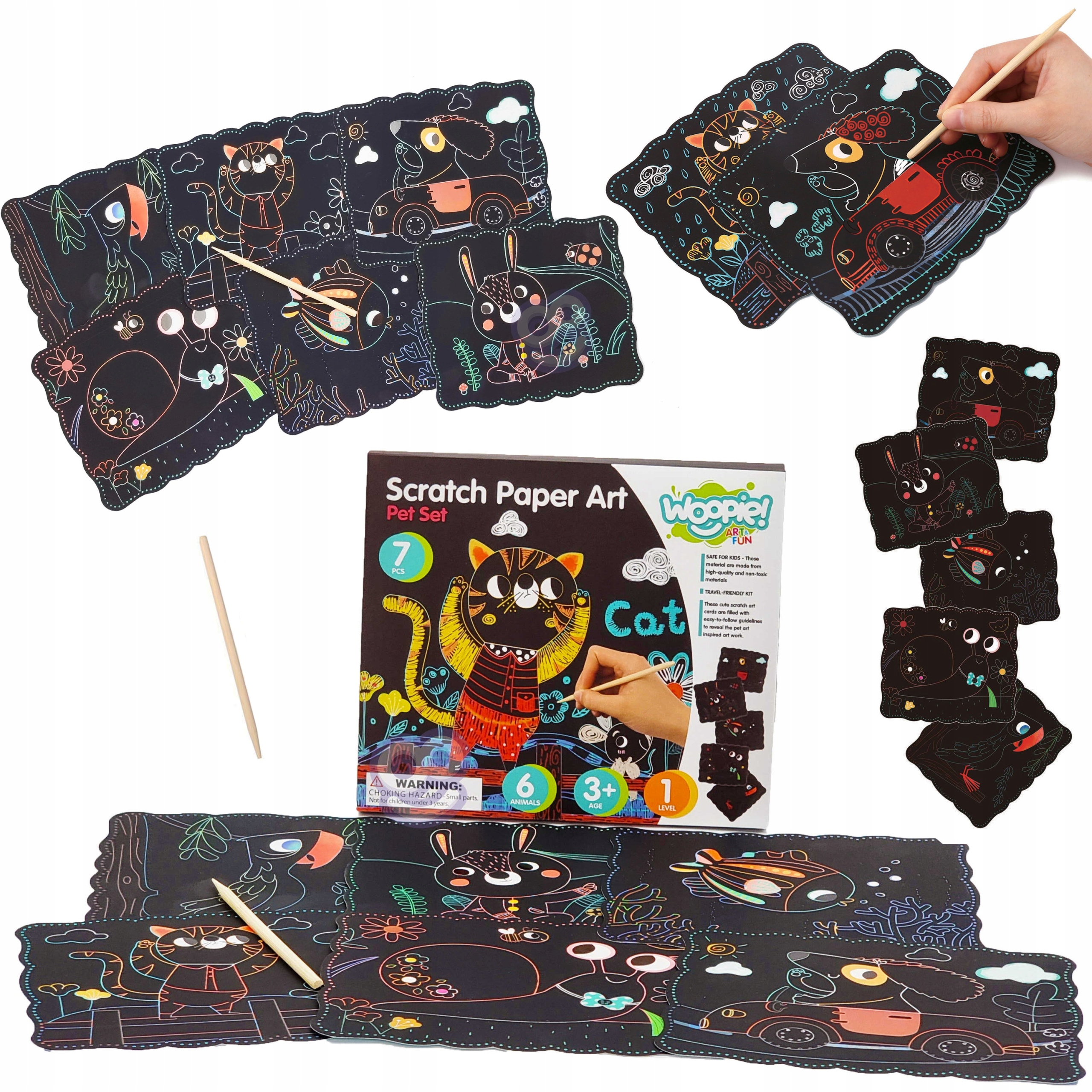 Разбудите воображение вашего ребенка волшебными играми-царапаками от бренда WOOPIE из серии ART&FUN! С помощью деревянного стилуса ребенок может выцарапывать новые формы/узоры, нанесенные на доску, а затем наблюдать, как цвета создают необычное, связное изображение с животным мотивом! В наборе 7 элементов, включая 6 скретч-досок и стилус. Доски содержат изображения кошки, собаки, улитки, кролика, рыбы и b>попугай. Вы можете брать ребенкас наборомкуда благодаря удобной упаковке с застежкой. Игрушка развивает моторику ребенка, стимулирует творчество и воображение!