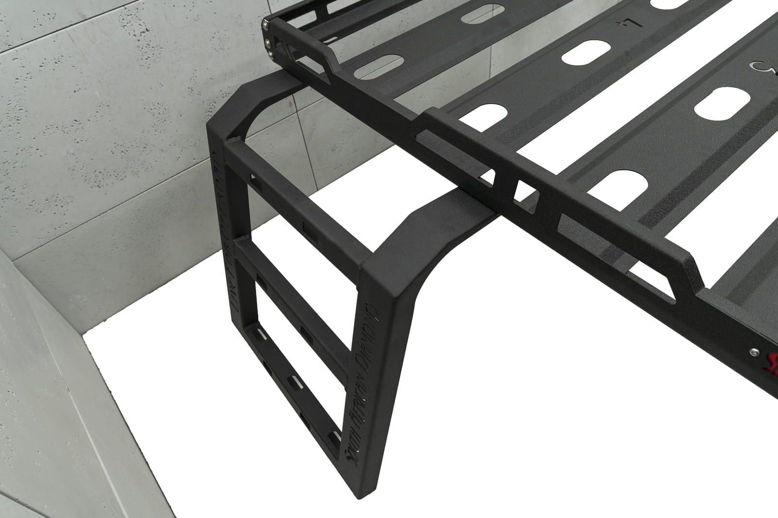 Идеально устанавливается на крышу Wrangler, идеально подходит для перевозки дополнительного багажа в поездках, туристического снаряжения и т. д. Позволяет просто и быстро закрепить перевозимый груз. Встроенная лестница позволяет принять более удобное положение при размещении груза на крыше, что значительно улучшает процесс. Конструкция багажника также допускает установку дополнительного освещения.