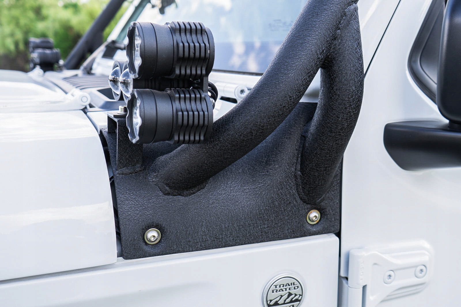 Диаметр труб — до 2 дюймов (5,04 см). Прочная конструкция позволяет загружать до 135 кг равномерно распределенного груза (300 фунтов). Модульная конструкция и съемные поперечины облегчают разборку Soft или HardTop. В комплект входят 4 поперечины, привинченные к рамной конструкции с помощью ручек. Поперечины можно свободно перемещать и демонтировать. Рама крепится в 4 точках: к креплениям передней двери и к задней раме.