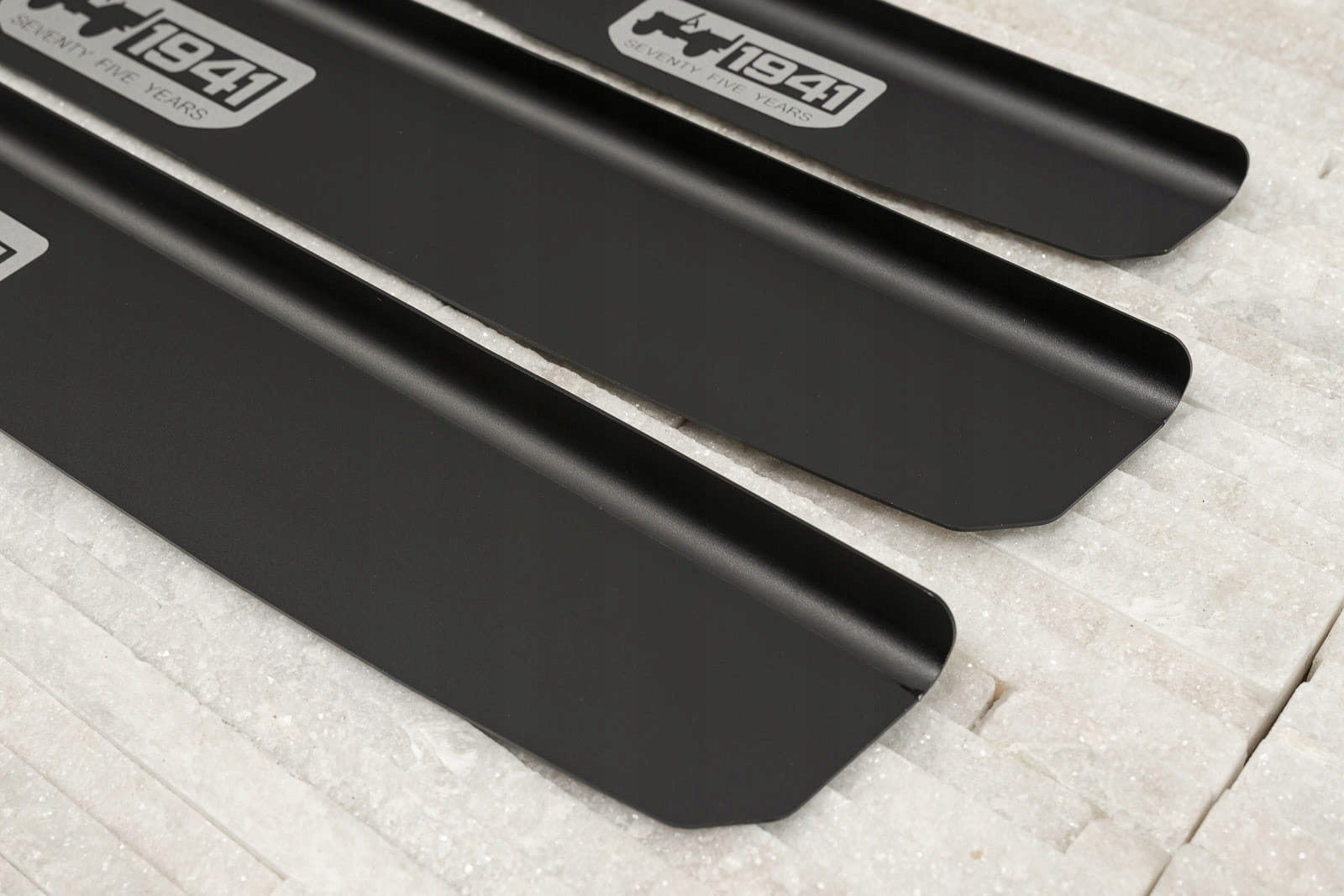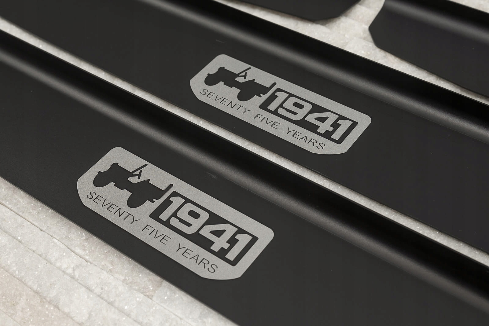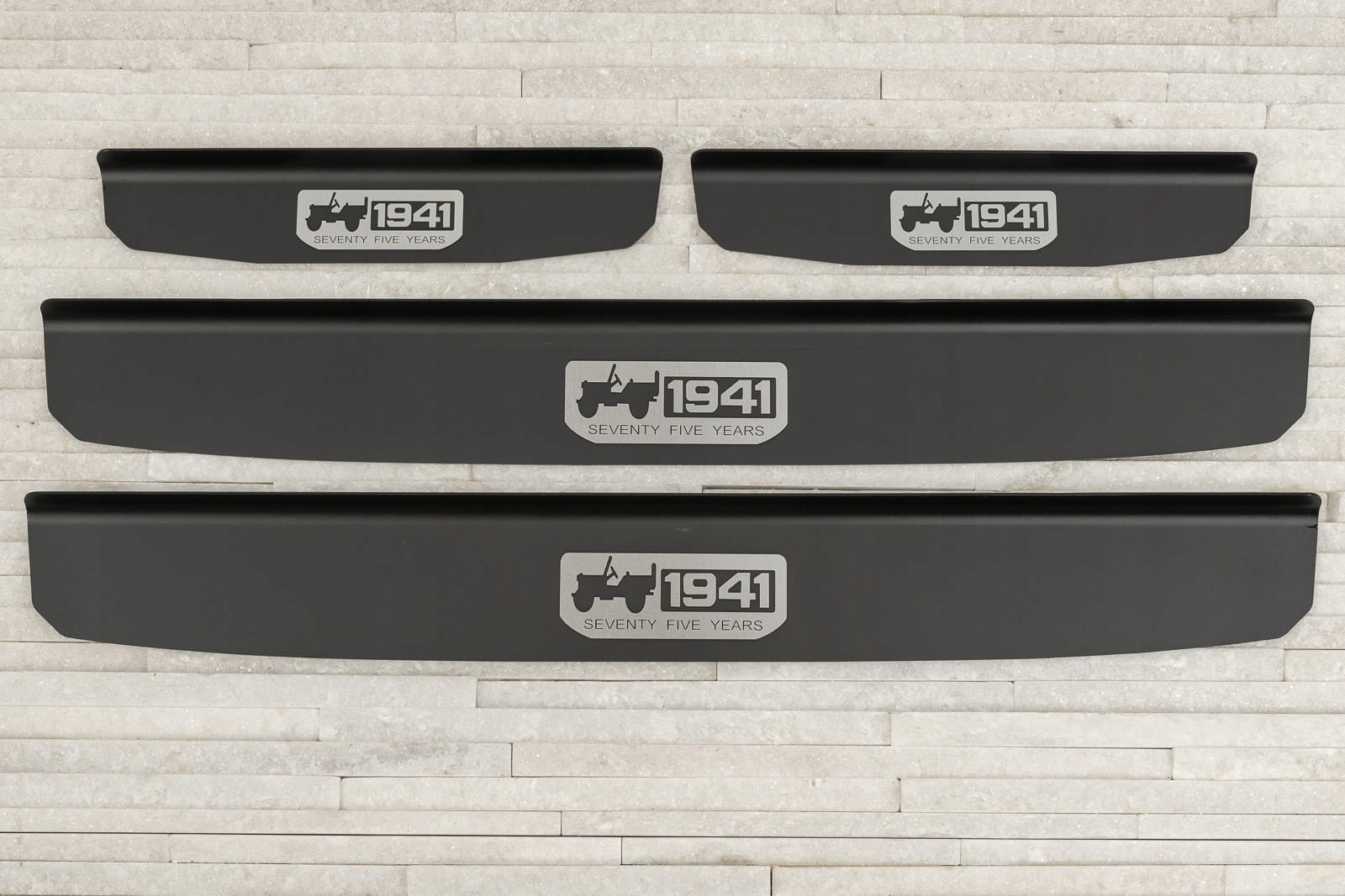 Полоски крепятся на окрашенные части внутренних порогов. Они дополняют внутреннюю линию дверей и придают зоне подоконников спортивный акцент. Принт на полосках отмечает год основания бренда и отсылает к стилю американского военного внедорожника Willys MB, давшего начало модели Wrangler. Помимо своей дизайнерской ценности, полоски играют защитную роль, защищая дверные пороги от царапин и повреждений, которые могут возникнуть при посадке и выходе из автомобиля.
