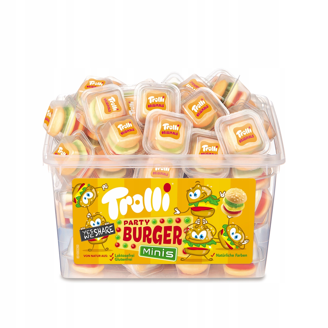 Наши желе в форме гамбургеров от бренда Trolli – настоящий праздник гурмана! Их уникальный фруктовый вкус и мягкая текстура являются гарантией высочайшего качества.