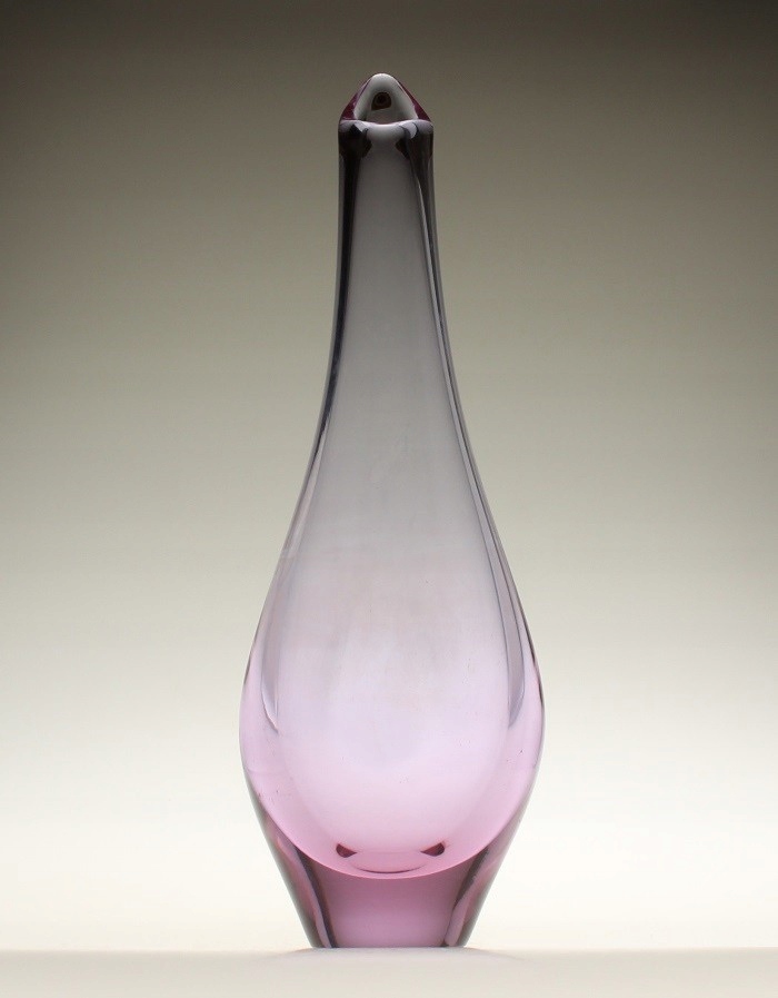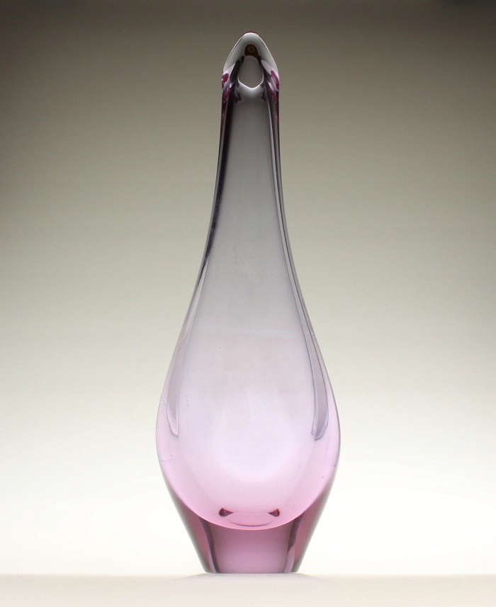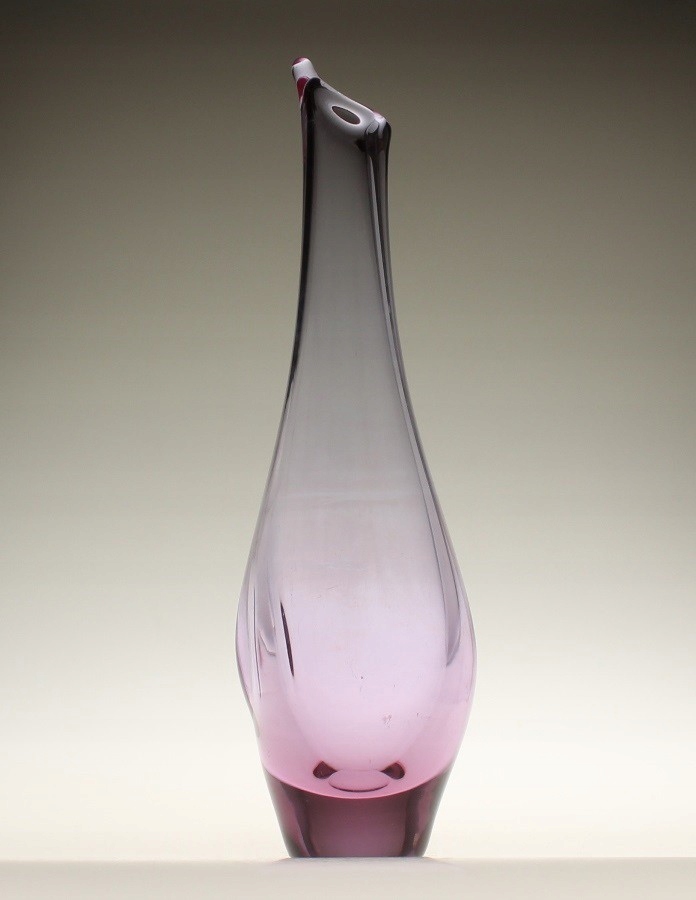 Ваза из натриевого стекла ручной работы цвета розово-аметист. Произведен на Железнобродском стекольном заводе. Чехословакия, 1960-е годы.