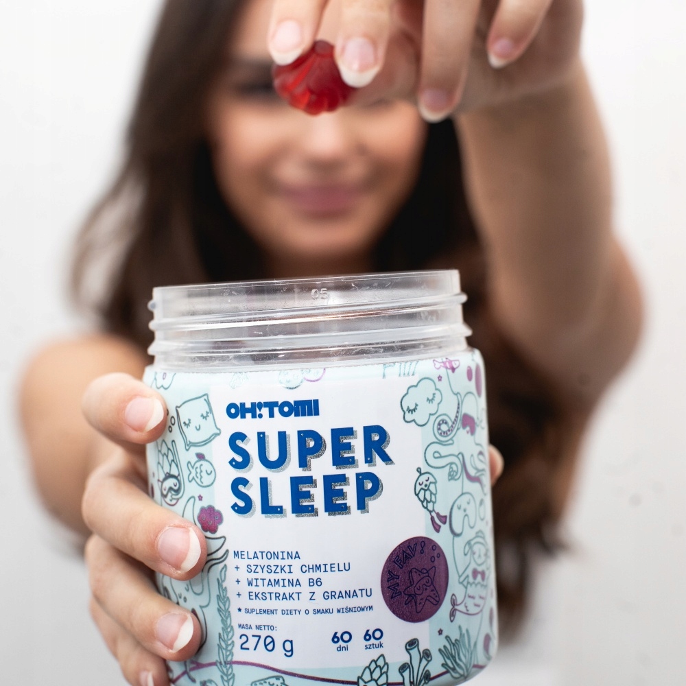 О! Жевательные конфеты Tomi Super Sleep помогут вам успокоиться и быстрее заснуть. Высококачественные ингредиенты, объединенные в виде вкуснейшего желе, создают идеальный рецепт сладкого сна.