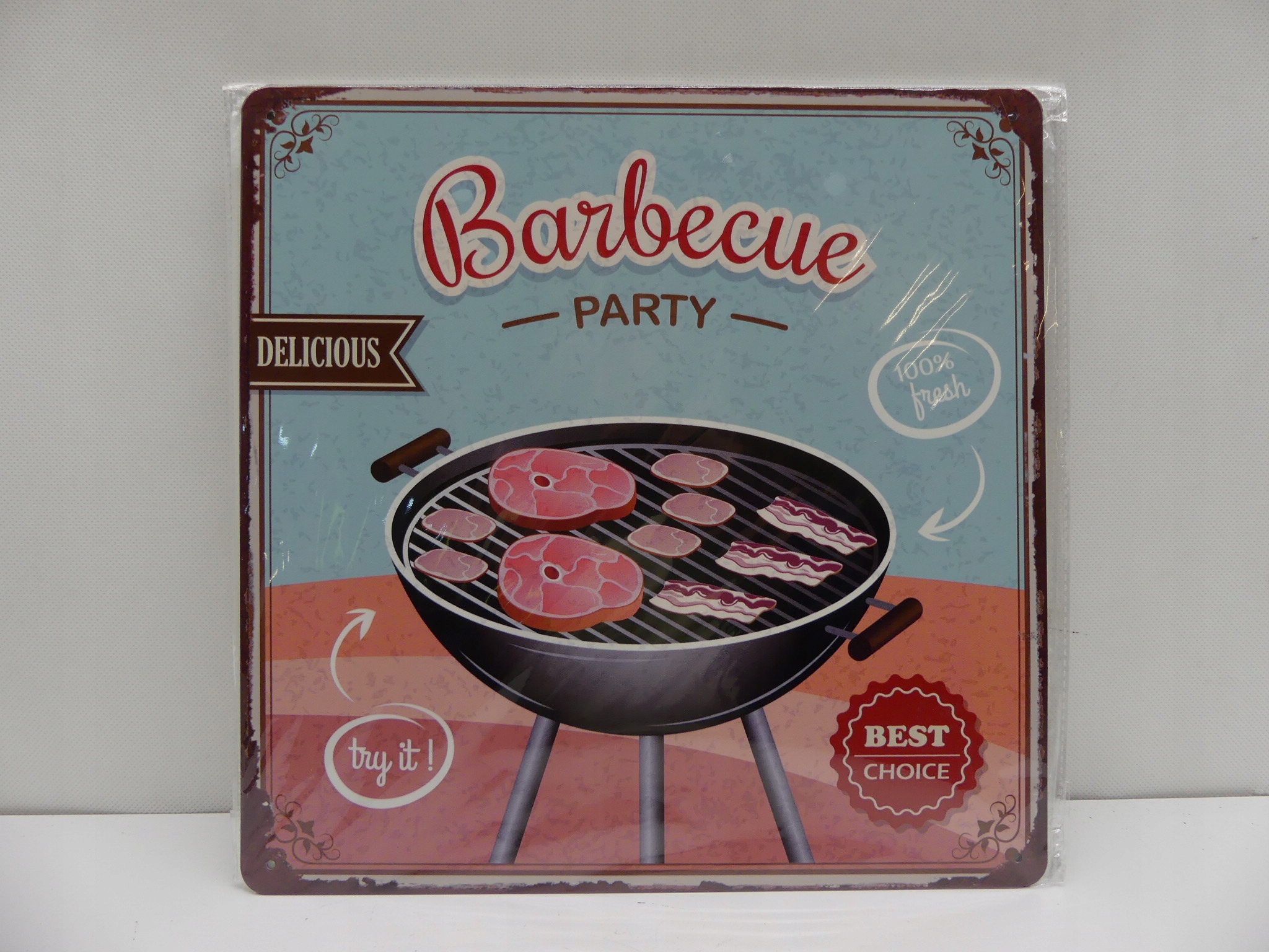 Жерстяна вивіска БАРБЕКЮ ПАРТІ-КРАЩИЙ ВИБІР 30Х30 см