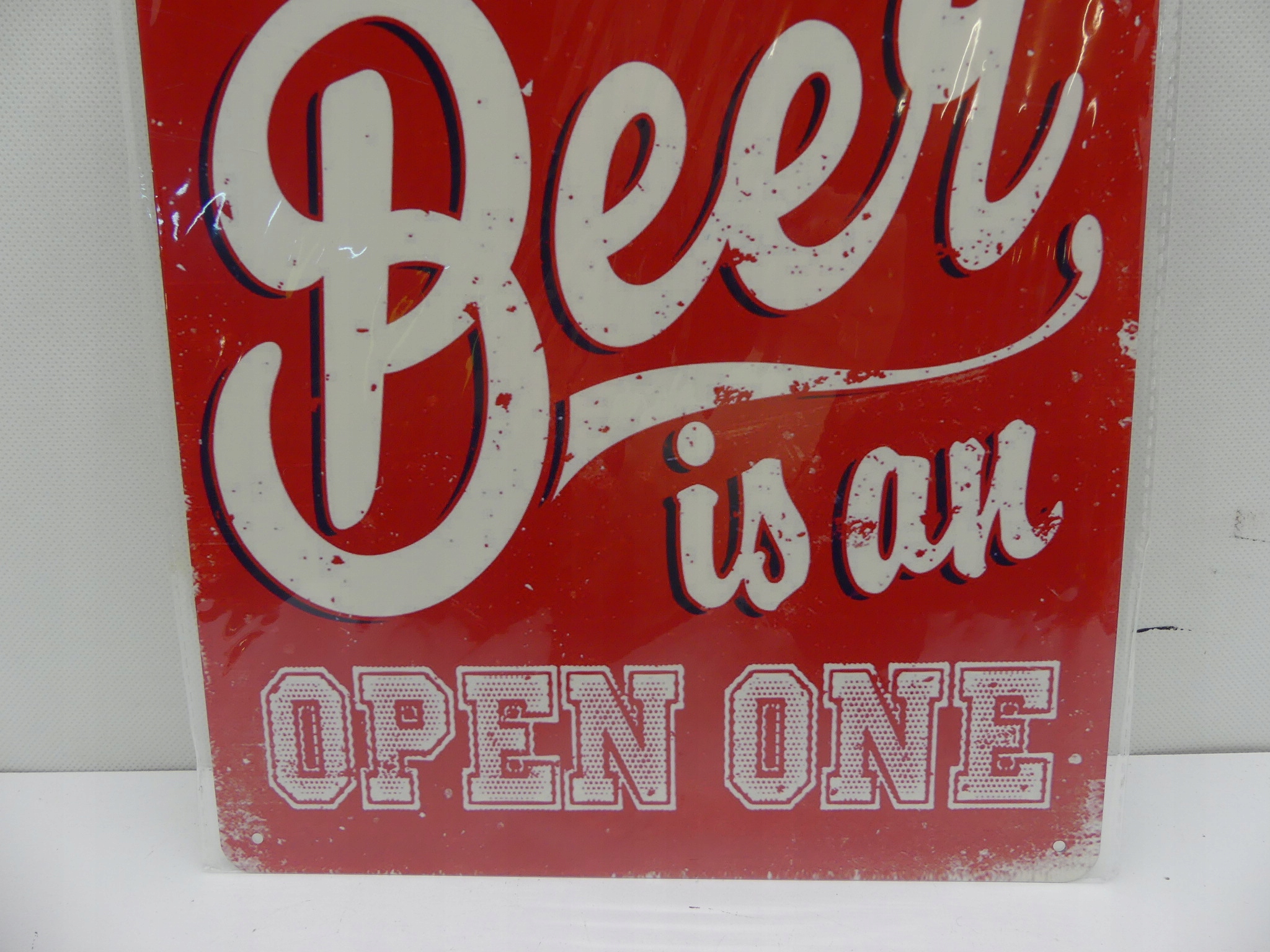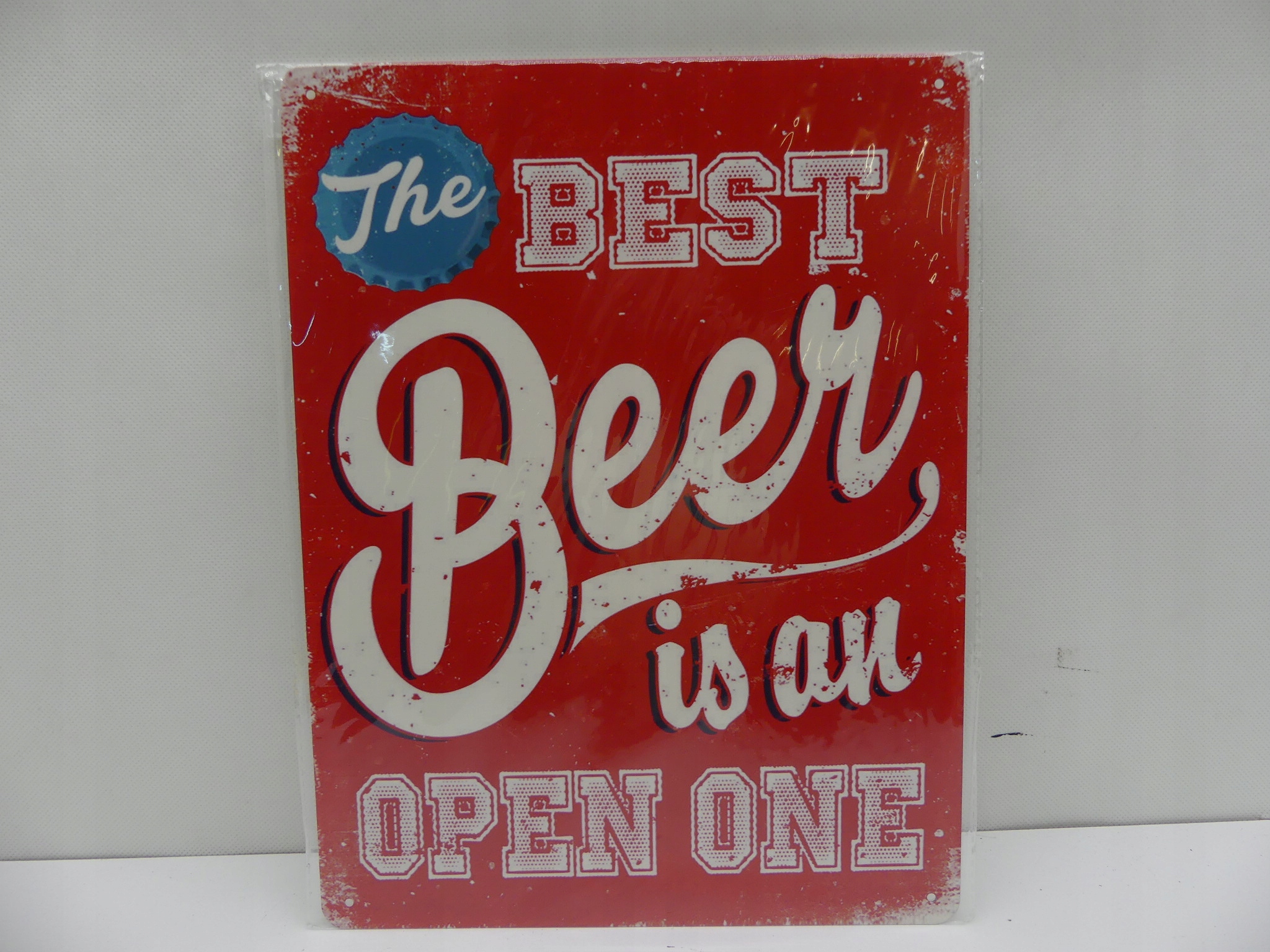 САМОЕ ЛУЧШЕЕ ПИВО — ОТКРЫТОЕ Жестяная табличка 33х25см.