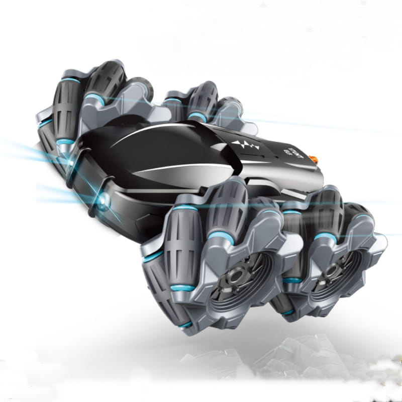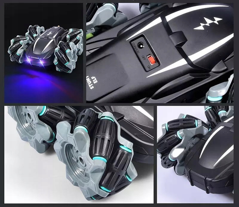 Входящий в комплект нарукавный браслет, который носится на руке, позволяет управлять автомобилем с помощью жестов. Например: если наклонить руку вправо, машина поедет вправо. Это совершенно новый и интересный способ провести время с самыми маленькими. Новая формула управления наверняка станет удивительным аттракционом.