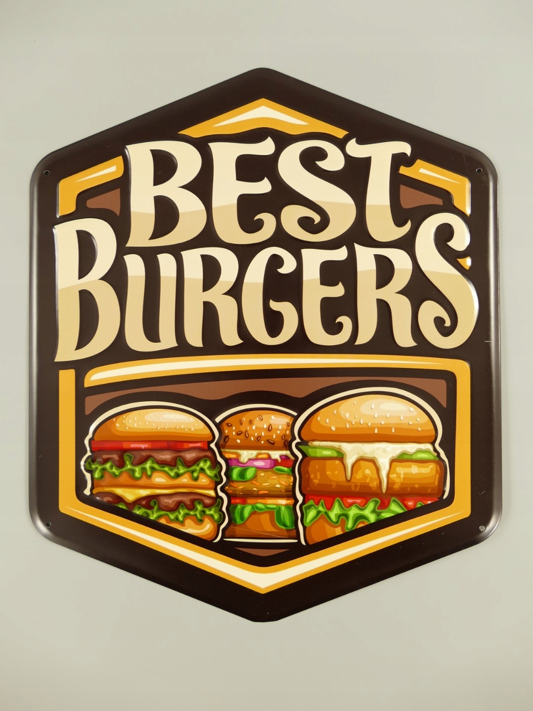 ЖЕСТЯНАЯ ЗНАК - ЛУЧШИЕ БУРГЕРЫ БУРГЕРИ БУРГЕР