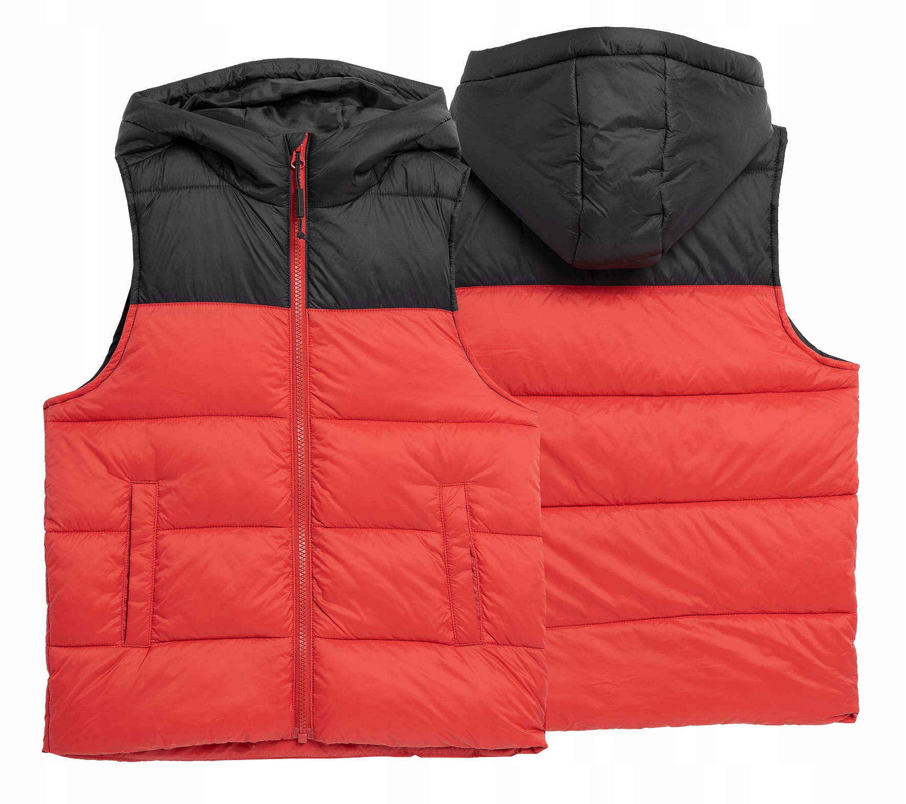 Стеганый пуховый жилет с капюшоном для мальчиков из последней коллекции 4F. Наполнен синтетическим пухом, который в сочетании с технологией 4Warm обеспечивает тепловой комфорт в холодные дни. Внешний материал покрыт гидрофобным покрытием, которое защитит куртку от влаги.