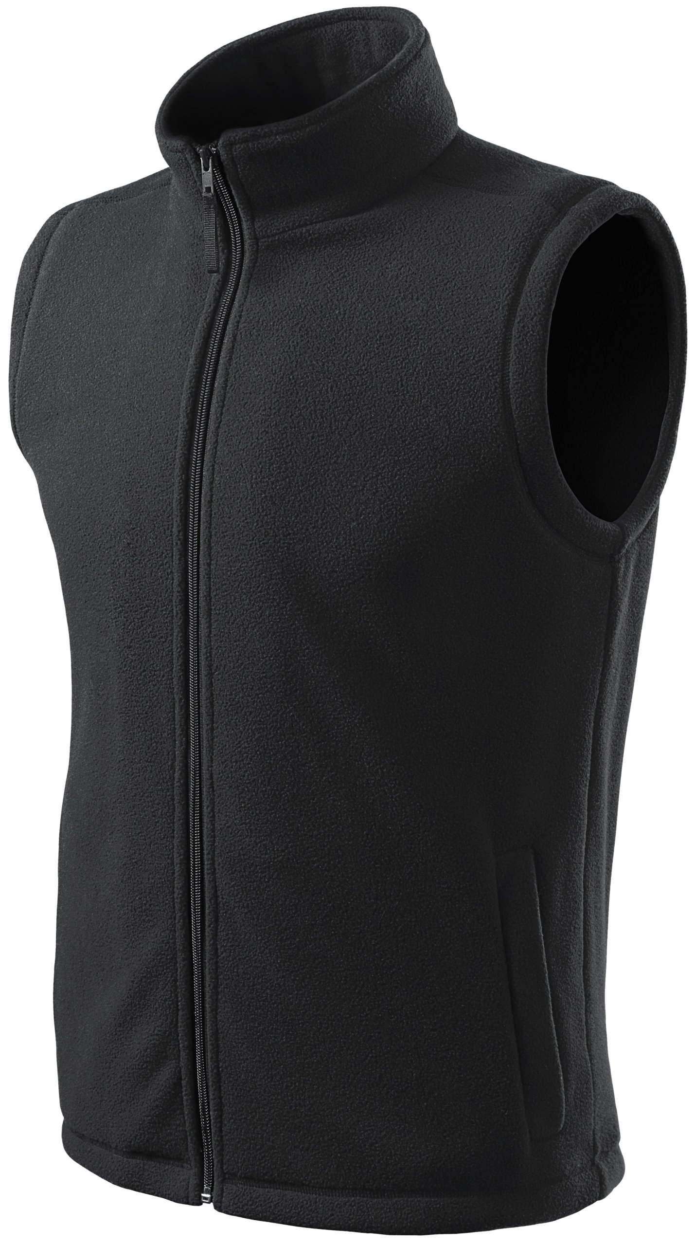 - Флисовый жилет унисекс классического кроя с двумя косыми карманами на молнии.