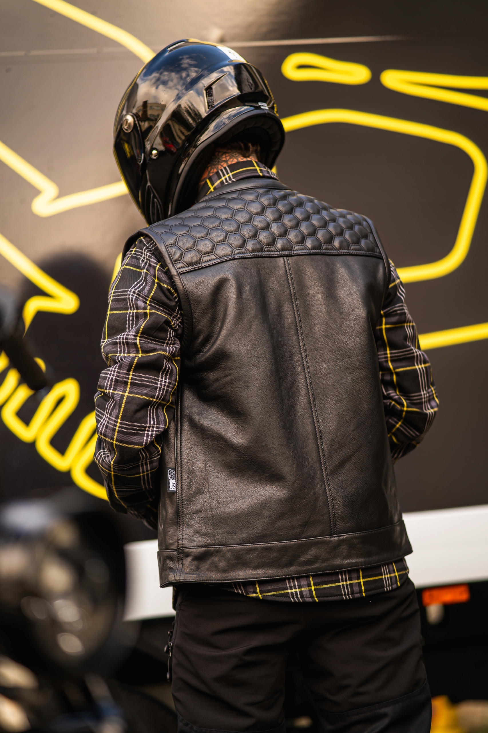 жилет с защитниками Bobhead Reaper Hex Cut Black был изготовлен из бычьей кожи высочайшего качества - долговечной, устойчивой и готовой ко всему.