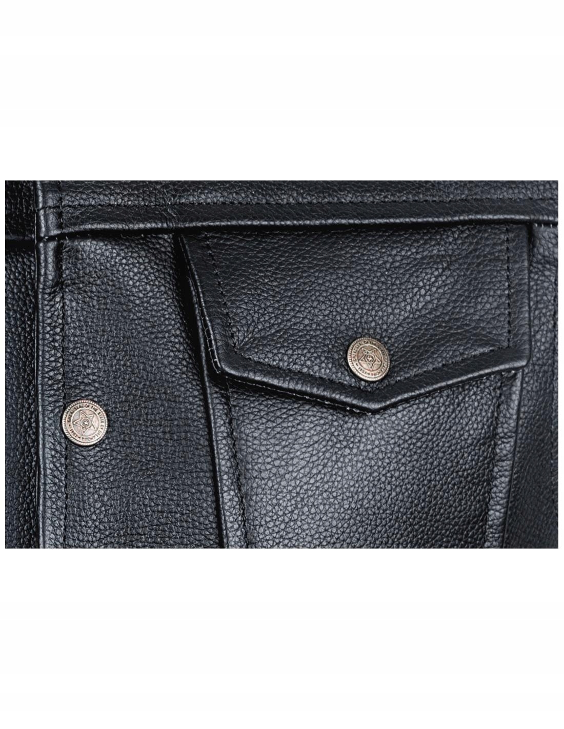 мужской кожаный мотор жилет. Мужская анархия Rypard состоит из естественной коровьей толщины 1,2-1,4 мм. Жилет прикреплен защелками, также имеет 4 прикрепленных внешних кармана, с двумя из них для снимков и два для молнии.