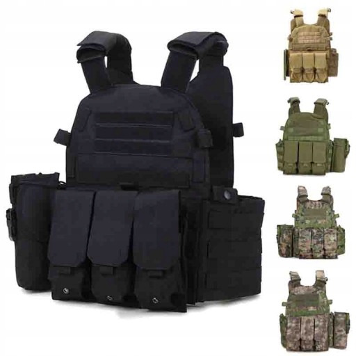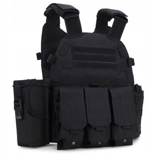 Боевой жилет позволяет носить с собой все аксессуары молле, включая подсумки для магазинов и кобуры для оружия.