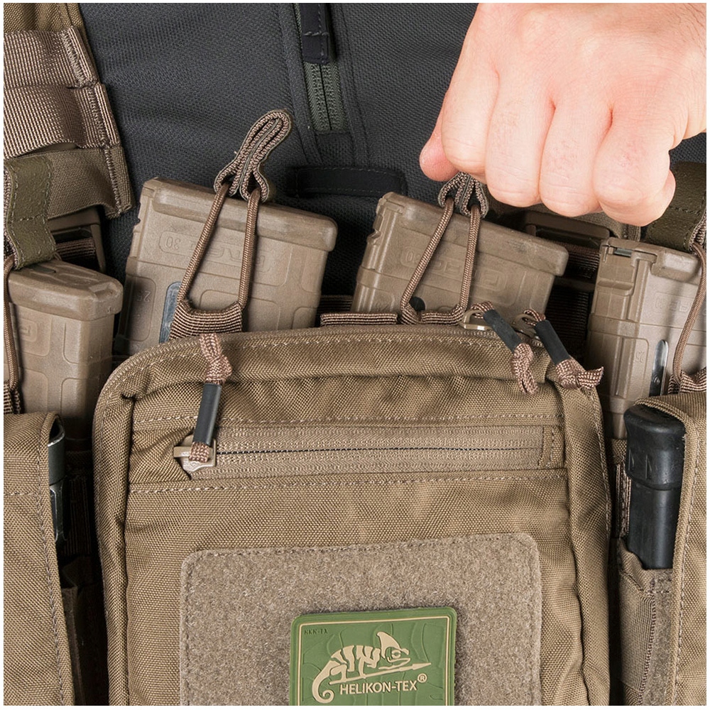 - Съемный карман с системой MOLLE/PALS, в котором можно разместить медицинский вкладыш или другое дополнительное оборудование.