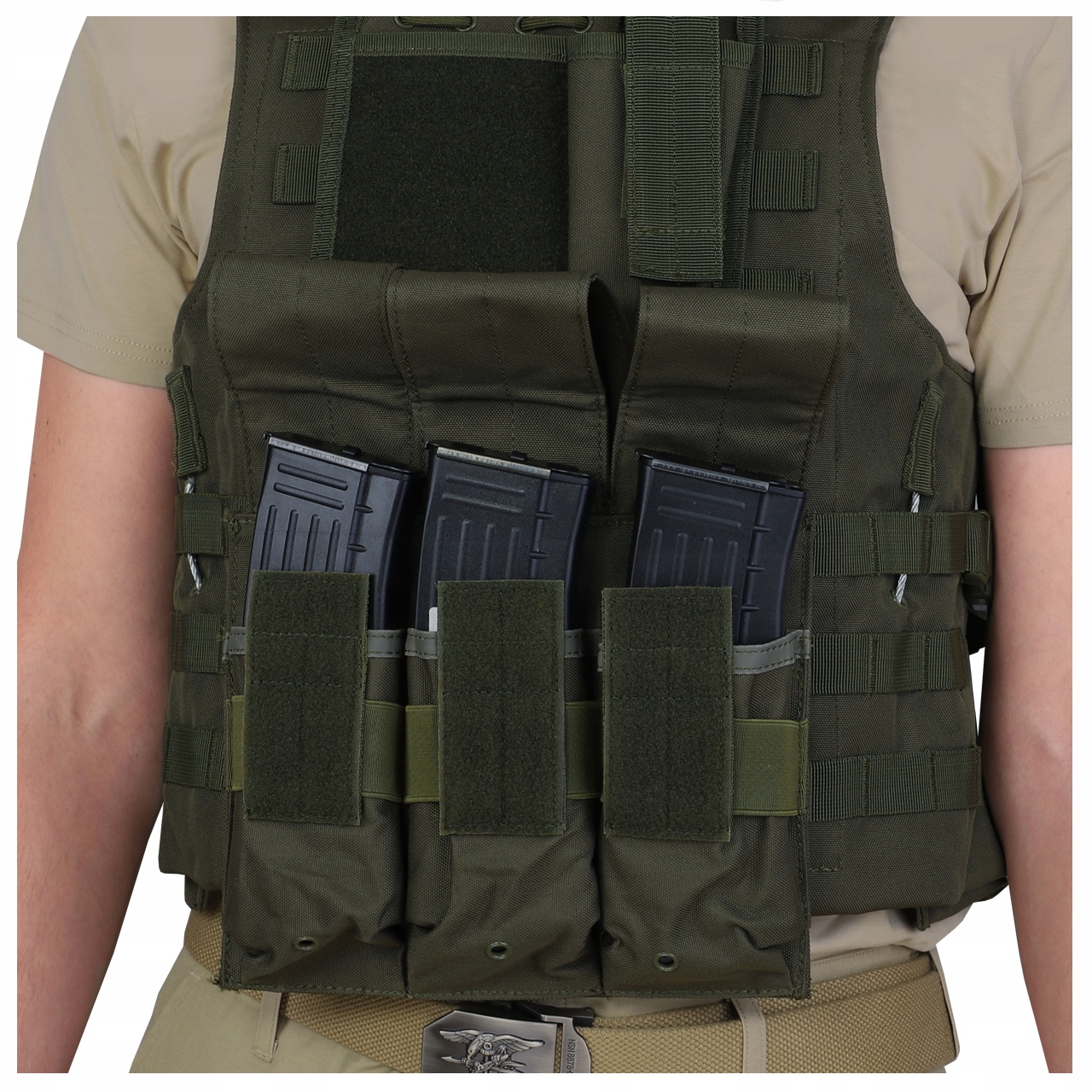Подсумок для журналов имеет 3 однокамерных отделения, закрывающихся клапанами на липучке б>. Резинки вокруг отделений затягивают магазины и предотвращают их выпадение при расстегивании клапанов.