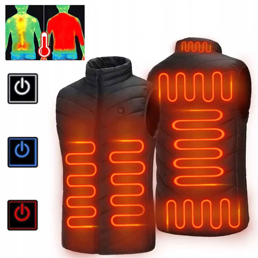 ЖИЛЕТ С ПОДОГРЕВОМ, 3-УРОВНЕВАЯ ТЕМПЕРАТУРА, 9 ЗОН НАГРЕВА
