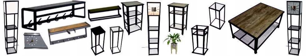 Рамки изготовлены из металла с черным порошковым покрытием и матовой поверхностью, а столешницы изготовлены из плиты следующего цвета: