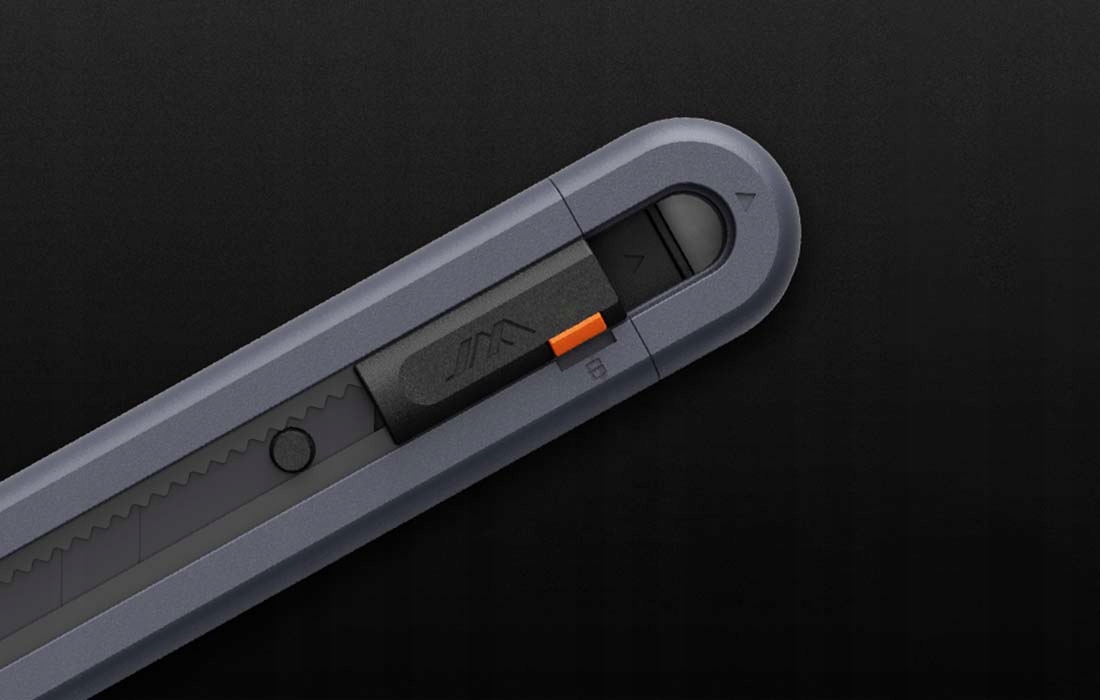 Лезвие можно свободно выдвигать. Просто нажмите кнопку в нижней части ножа и сдвиньте его вверх. Это полезная функция, когда кончик ножа уже затупился или когда нам нужна большая поверхность лезвия, например, при резке минеральной ваты.