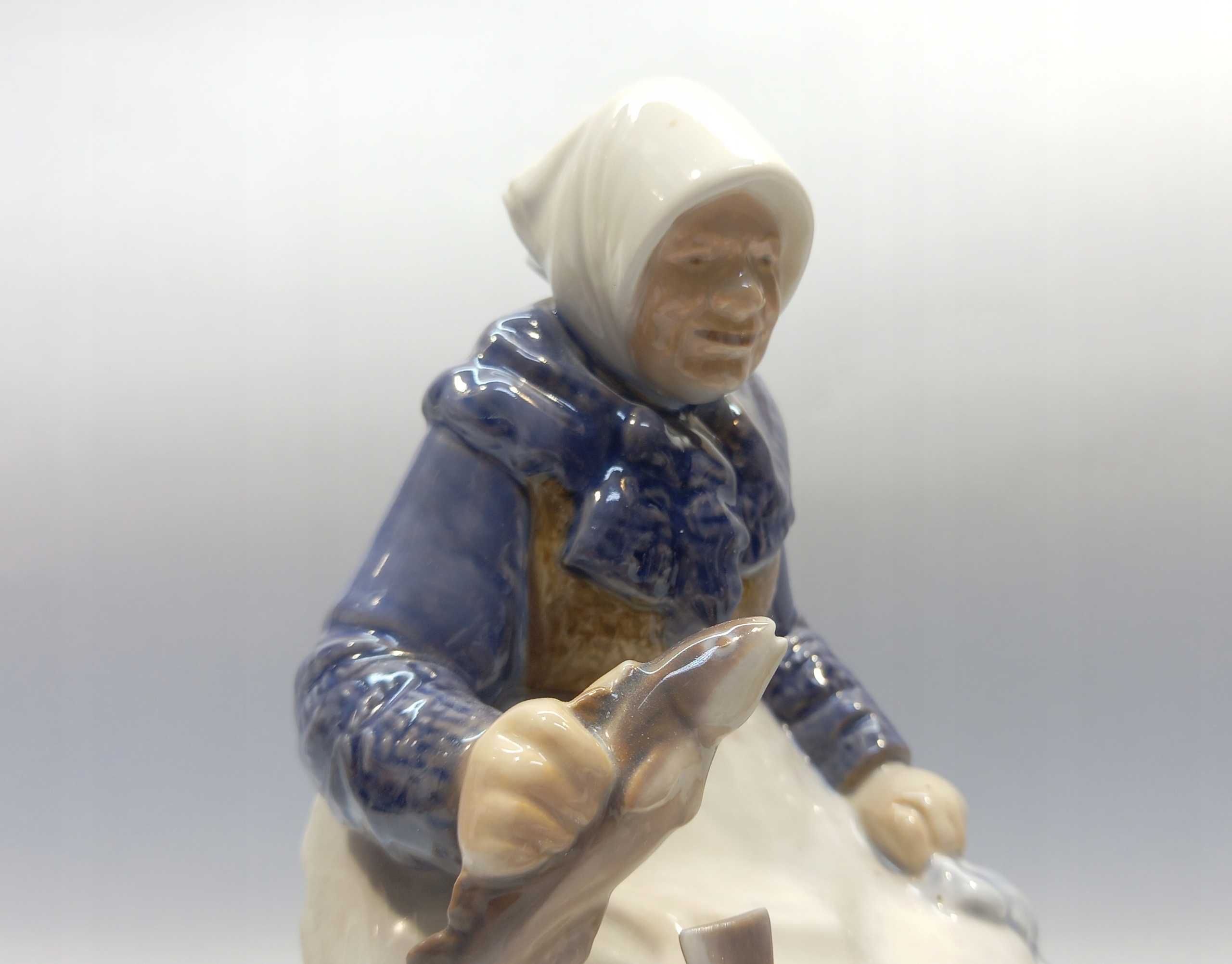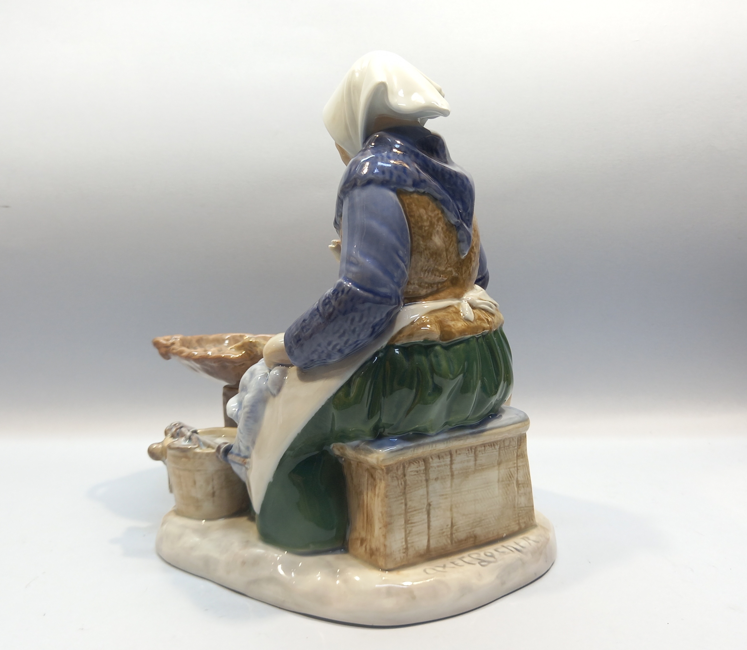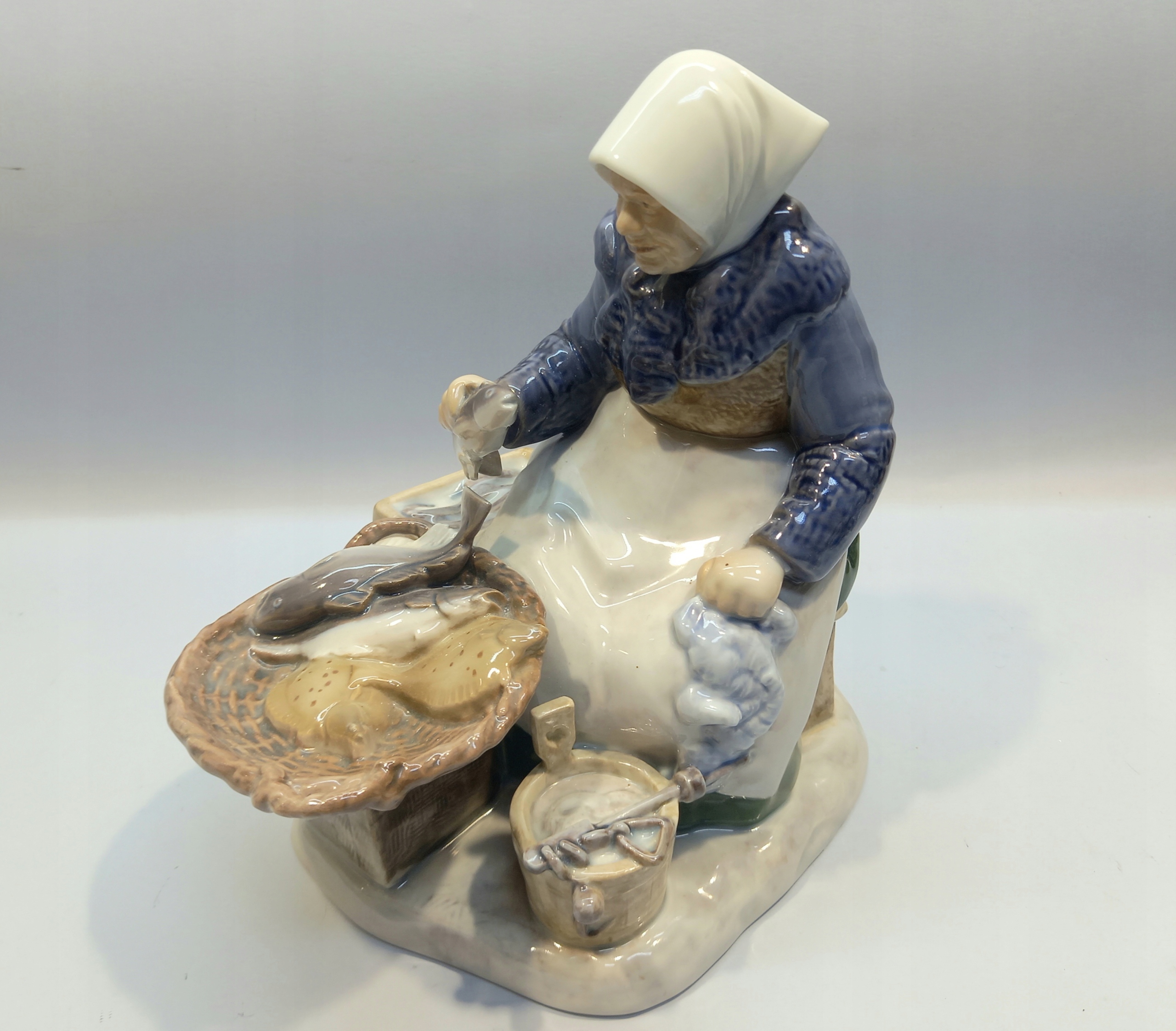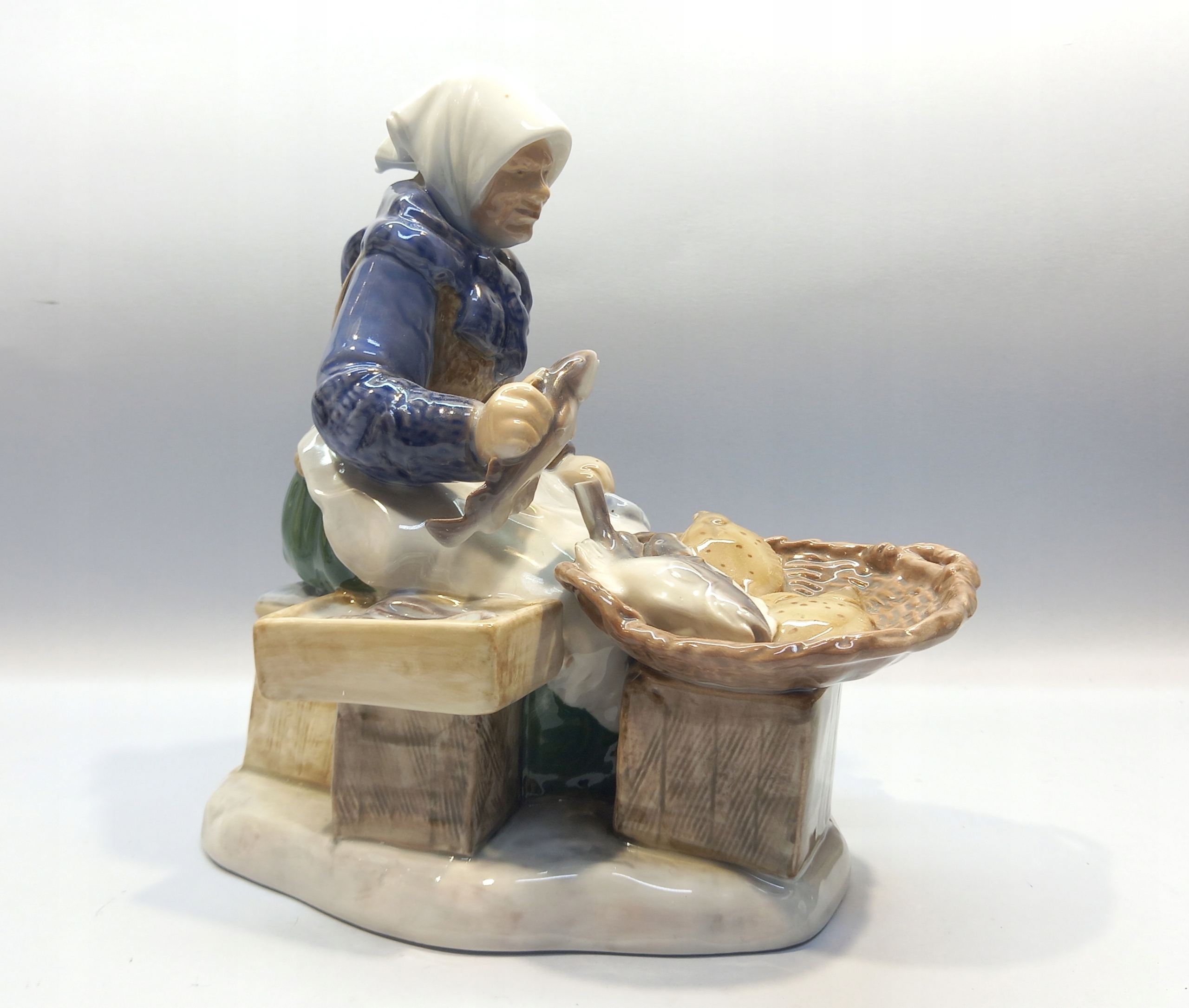 Женщина с корзиной рыбы - коллекционная фигурка. Он был создан на датской фарфоровой фабрике Bing & Grondahl в Копенгагене.