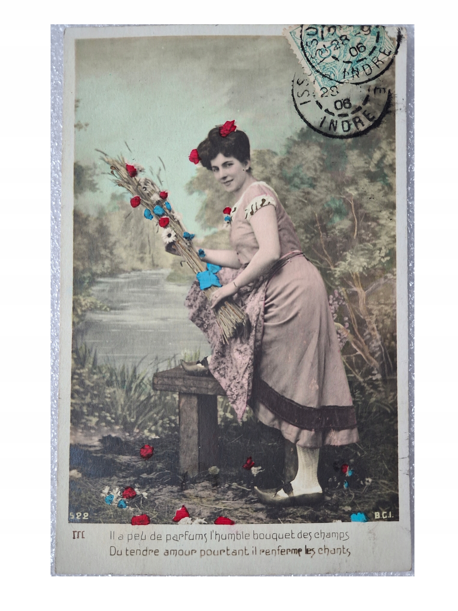ЖІНКА З КВІТАМИ - СТАРА ЛИСТІВКА