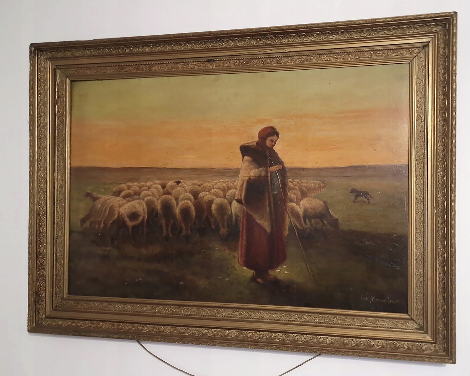 ЖЕНЩИНА С ОВЦАМИ БОЛЬШАЯ СТАРАЯ КАРТИНА МАСЛОМ ДРАГОЦЕННАЯ ЖИВОПИСЬ СТАРАЯ РАМКА