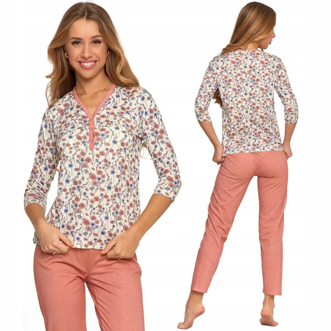 ЖЕНСКАЯ ПИЖАМА ИЗ ХЛОПКОВОЙ ДВОЙКИ С ЦВЕТАМИ КОМФОРТНАЯ MORAJ XXL