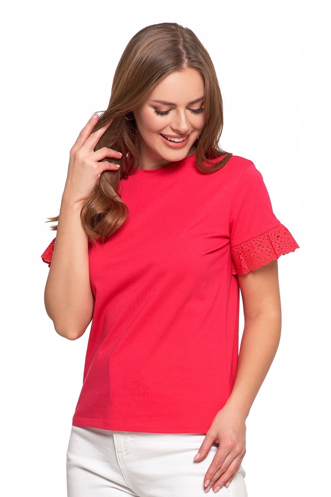 Эта стильная t -мала составляет классический порез с тонкой отделкой в виде кружевных рукавов. Благодаря воздушной хлопчатобумажной ткани, она идеально подходит для более теплых дней, обеспечивает комфорт и свежий женский вид. Он идеально сочетается с ежедневными стилизациями, придавая им деликатную элегантность.