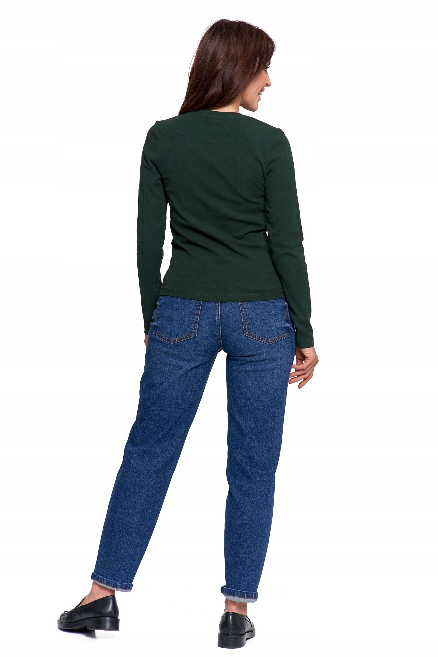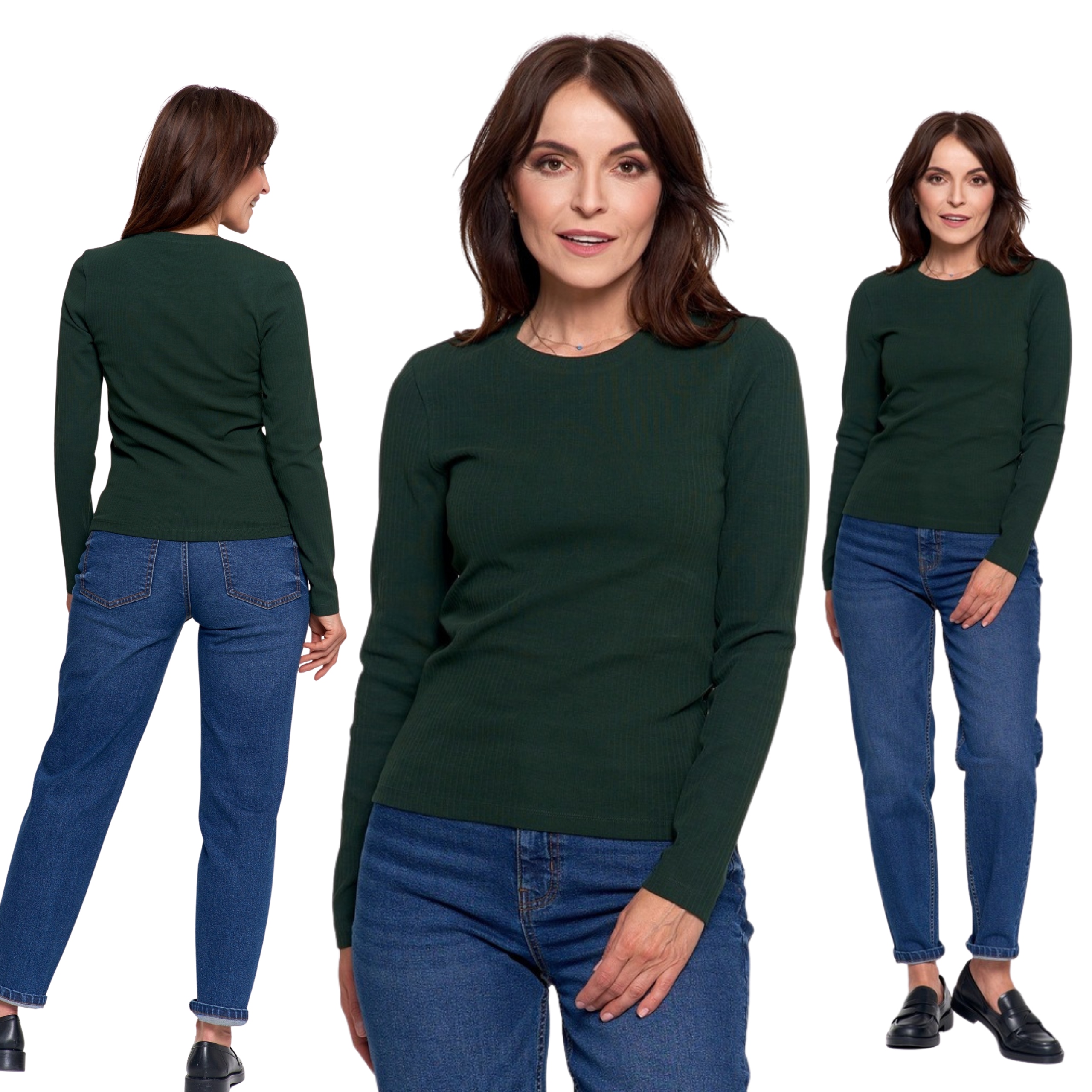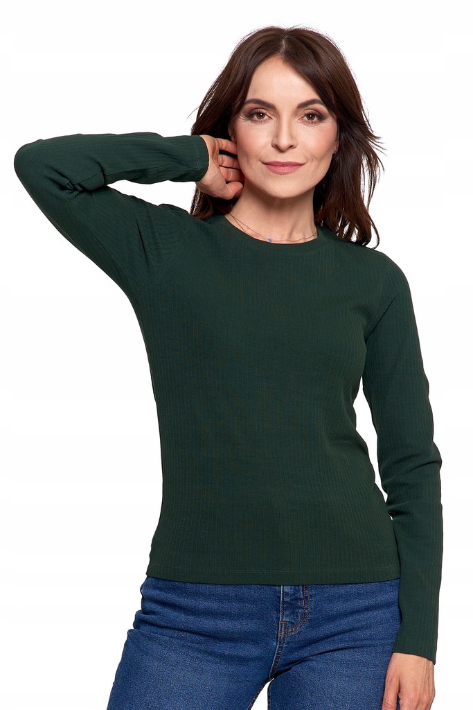 ЖЕНСКАЯ ХЛОПКОВАЯ БЛУЗКА С ДЛИННЫМИ РУКАВАМИ MORAJ RIBBED ЗЕЛЕНАЯ M