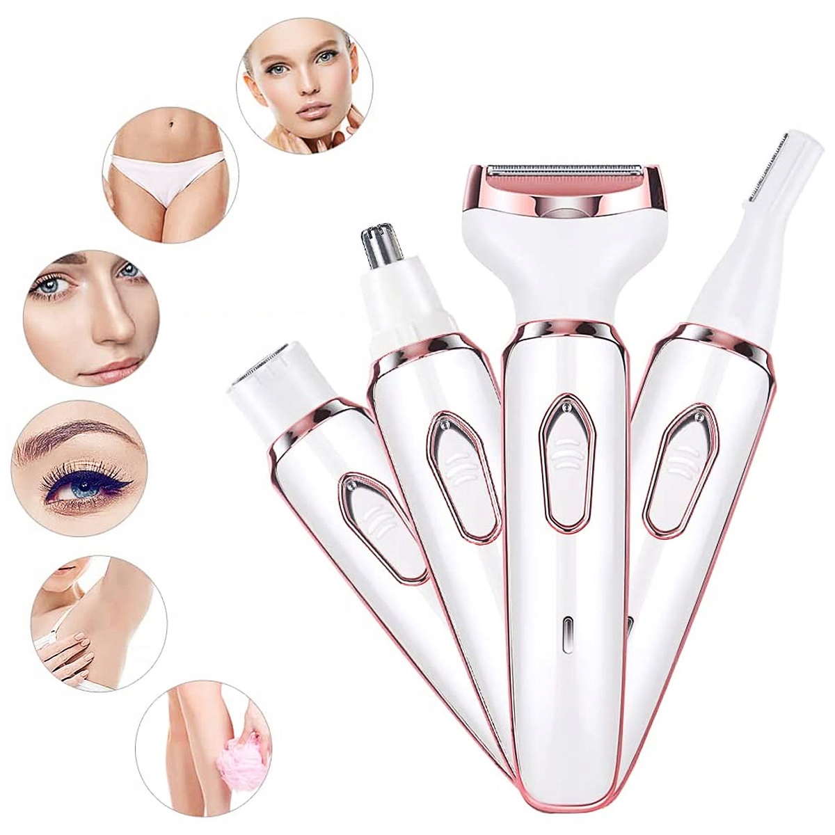 Набор 4 в 1 электрический бритву содержит 4 многофункциональных заменяемых головок для бритья, которые могут немедленно удалить волосы с лица, руки, ноги, бикини, нос, бровей и другие части, благодаря которой кожа более плавна, так что вам не нужно беспокоиться о воздействии на лиц.