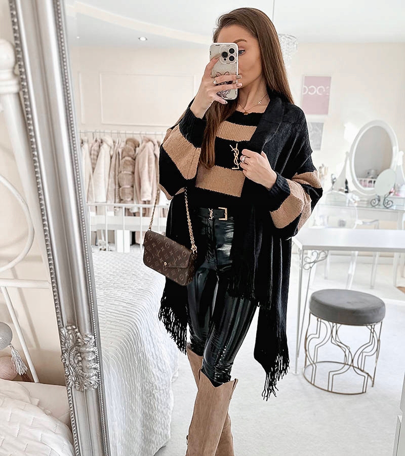 Жіноча чорна накидка з бахромою F-5615