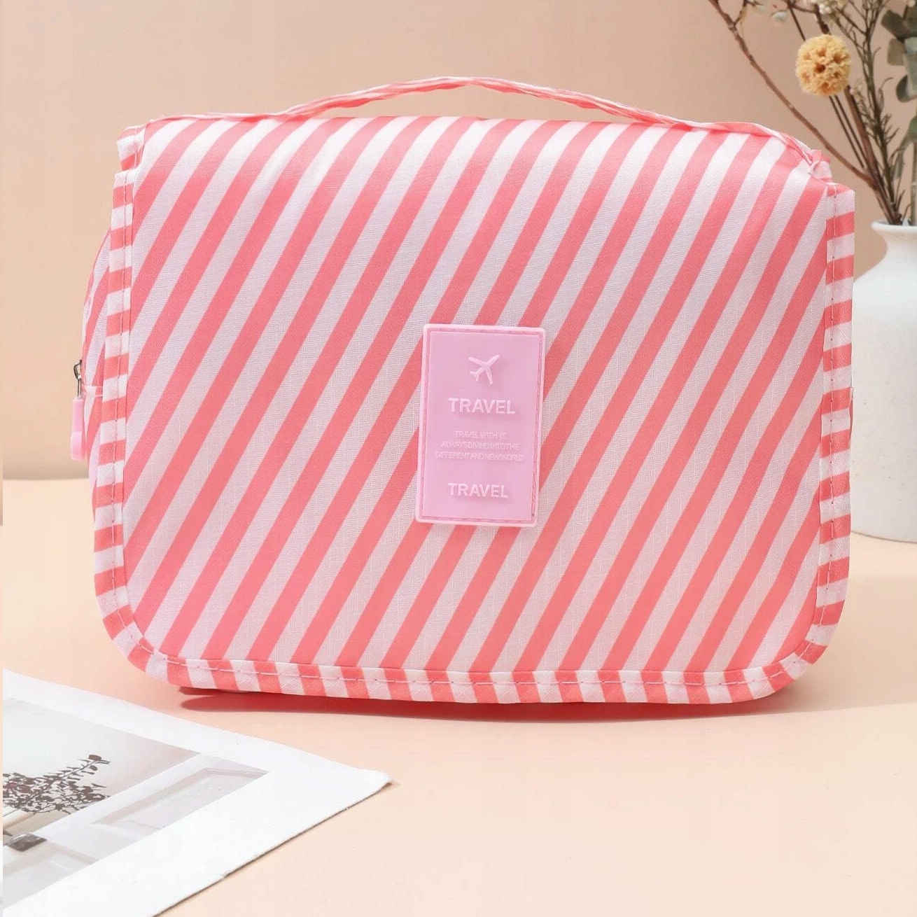 Жіноча дорожня косметичка, підвісна, рожева, в смужку, органайзер літак