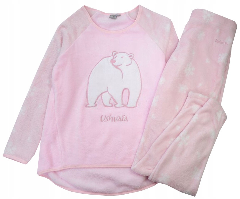 ЖІНОЧА ФЛІСОВА ПІЖАМА - теплий ведмедик РОЖЕВИЙ L F130C