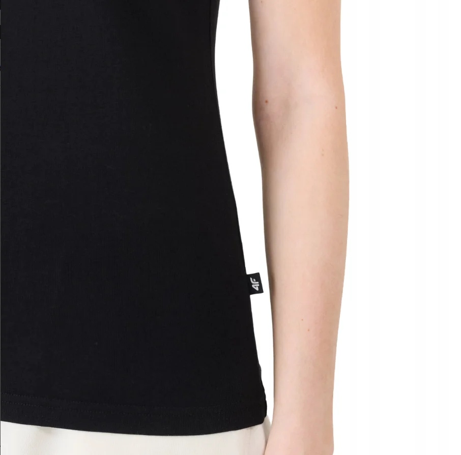 ЖЕНСКАЯ ФУТБОЛКА 4F, ЧЕРНЫЙ ХЛОПОК, КОРОТКИЙ РУКАВ, V-образНЫЙ ВЫРЕЗ