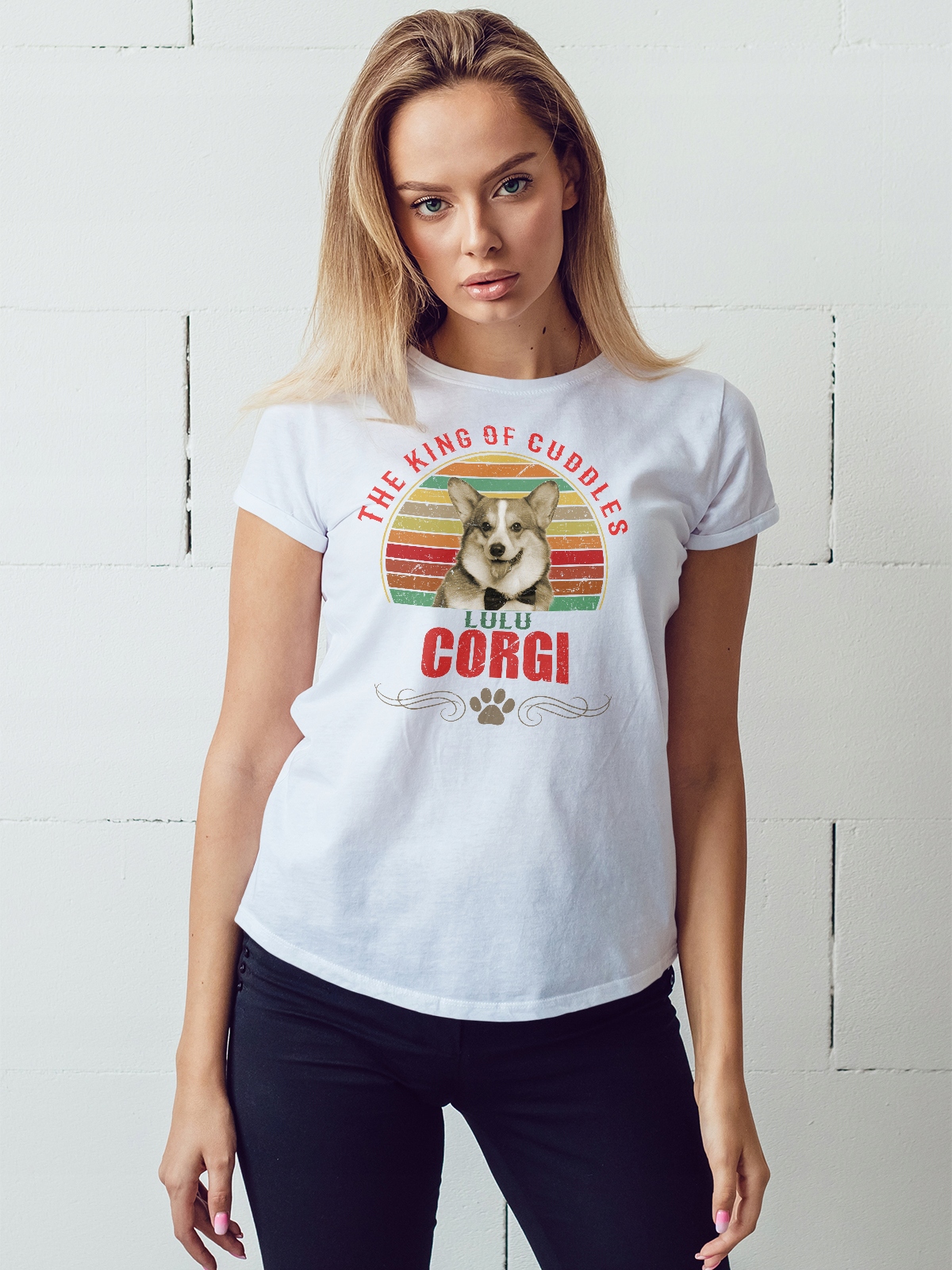 ЖЕНСКАЯ ФУТБОЛКА МОЯ СОБАКА ПОРОДА КОРГИ ИМЯ СОБАКИ ИМЯ