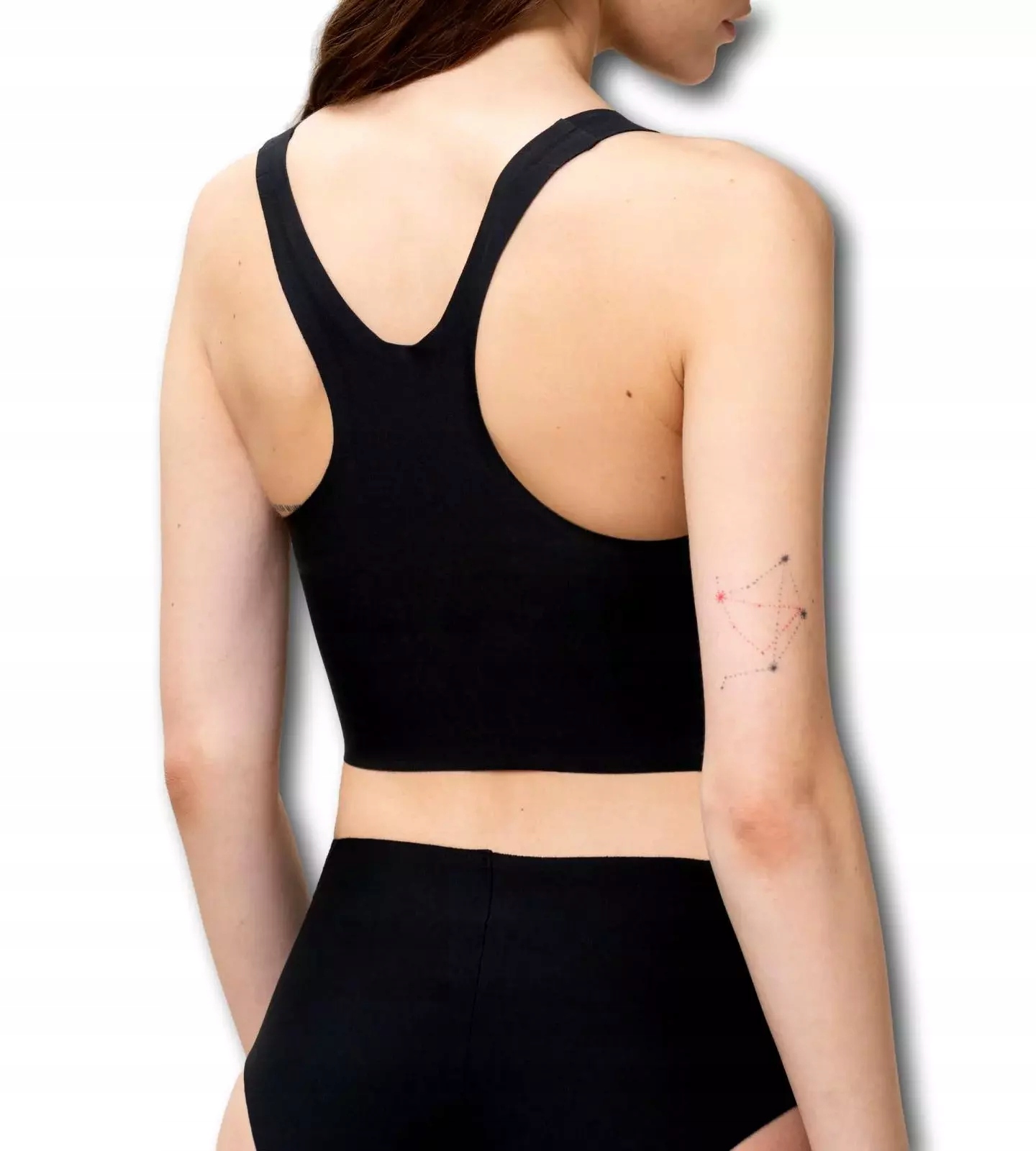 - Легкий спортивный топ-бюстгальтер без застежки.