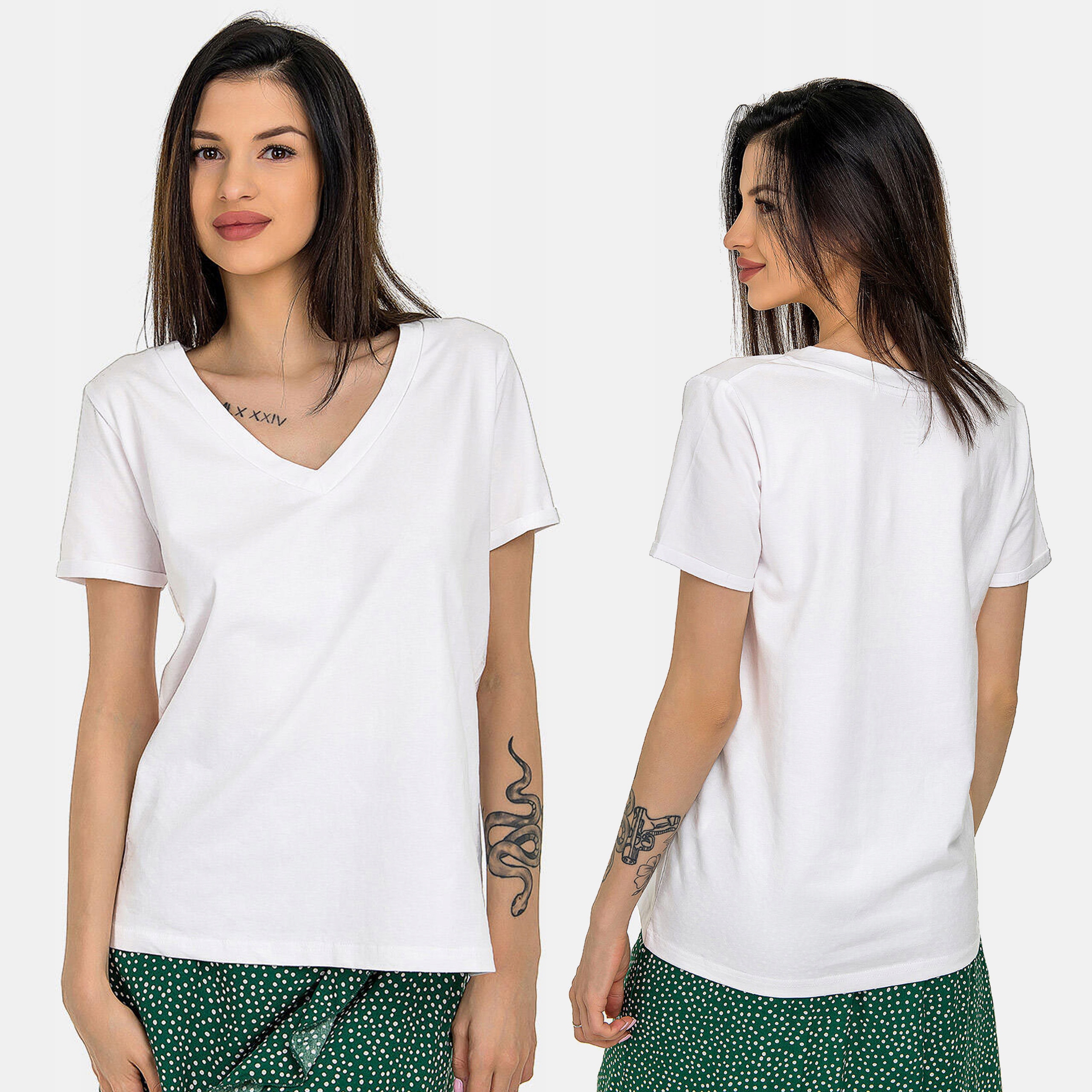 ЖІНОЧА ФУТБОЛКА З V-ВИРІЗОМ, БАВОВНА, CLASSIC BASIC, FASHIONABLE, БІЛА