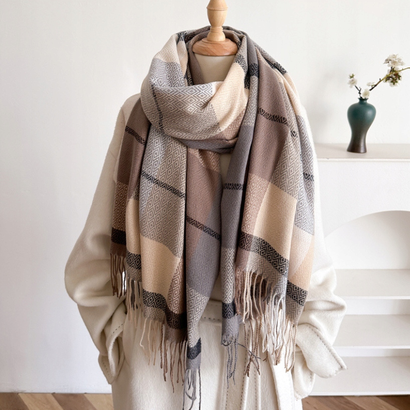 Женская платка Элегантная теплая модная решетка с бахромой с бахромой