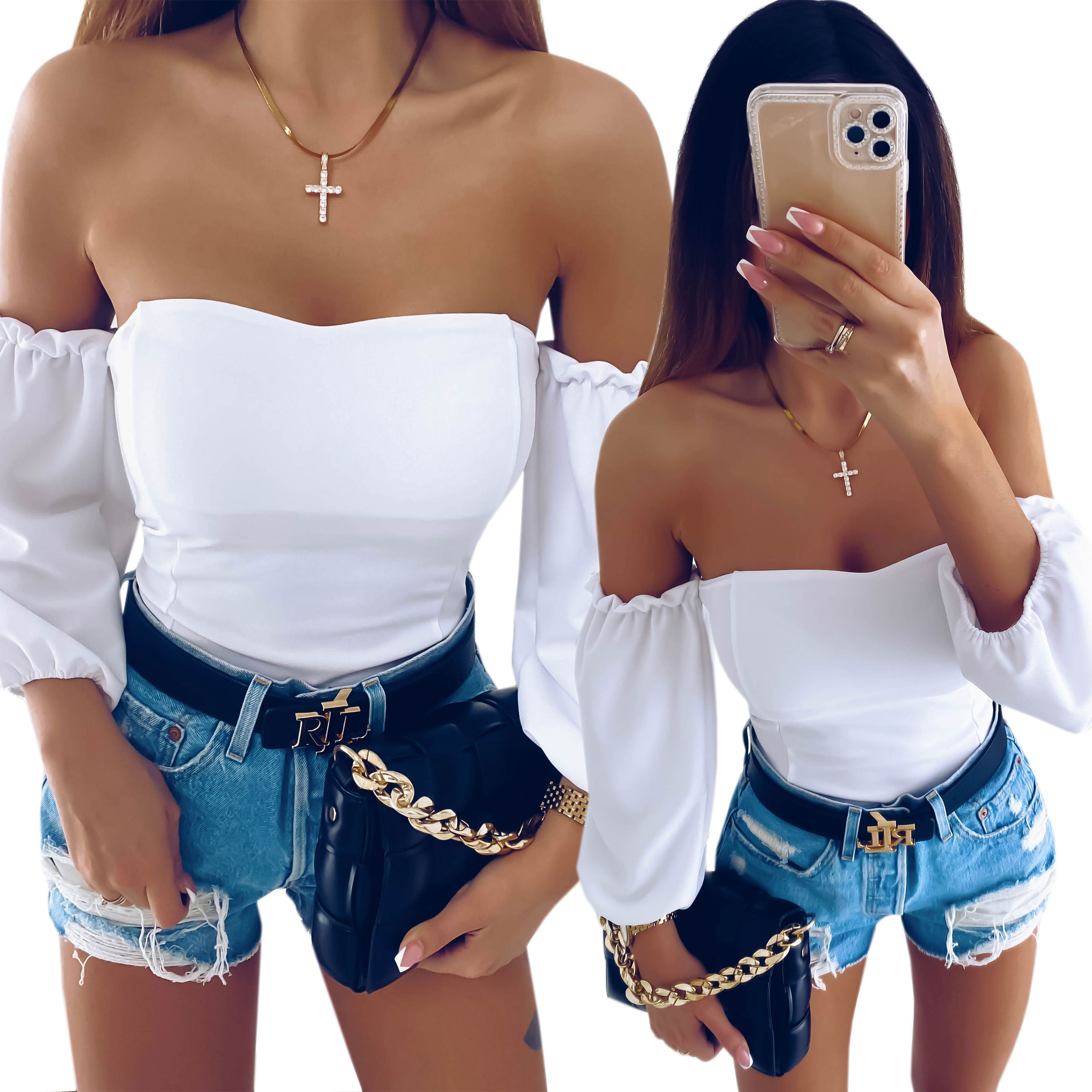 Наше следующее предложение — женский топ. Идеально подходит для теплых дней. Изготовленный из нежного и приятного материала, он обеспечит комфорт при ношении. Открытые плечи придадут вам чувственности, а нежные рукава-фонарики – элегантности. Идеально скроенный вырез в форме сердечка подчеркнет вашу грудь. Выберите свой идеальный цвет и создайте стиль с нашей моделью.