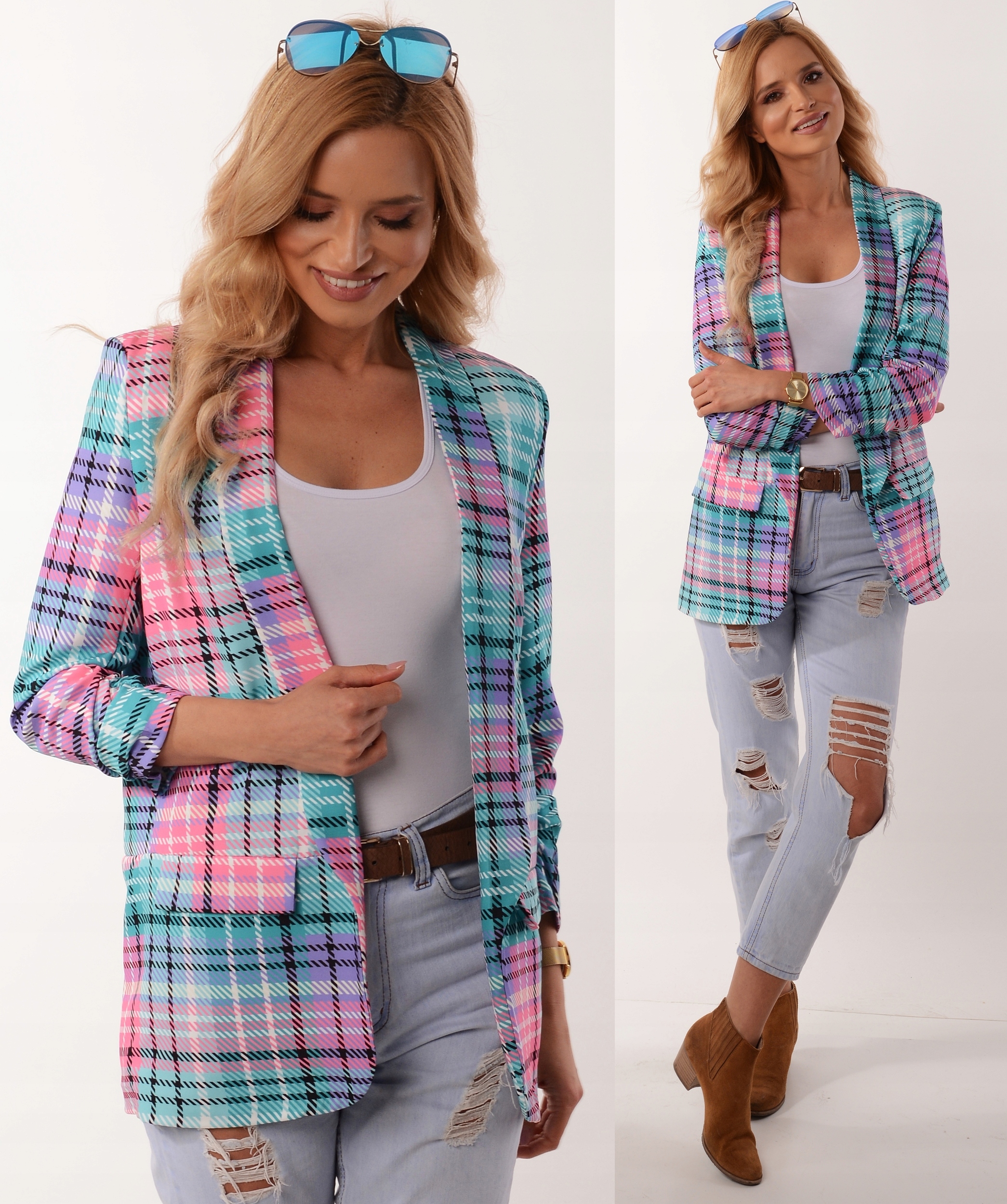 Уникальный модный свободный жакет с оригинальным ярким рисунком в клетку.