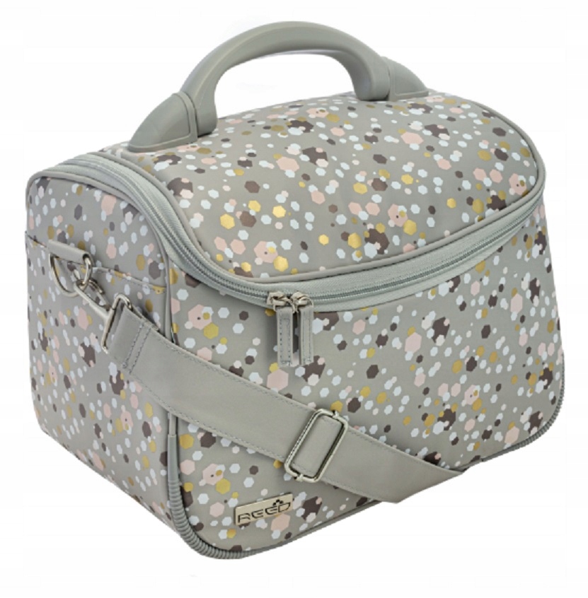 Чехлы изготовлены из приятного водонепроницаемого материала, внутри на подкладке. Внутри два отсека, разделенные жесткой стенкой, которую при необходимости можно отстегнуть и снять. На каждой стенке есть кармашки для резинок и резинок для хранения различных мелочей. На клапане имеется съемное зеркало на липучке. На задней внешней стенке имеется дополнительный карман на молнии. Дно усилено и усилено. Пластиковые ножки внизу. Боковины усилены пластиковыми уголками для предотвращения загрязнения и потертостей. Прочная, удобная, большая, подвижная пластиковая ручка для переноски и дополнительный регулируемый плечевой ремень. Элегантный металлический логотип REED на лицевой стороне.