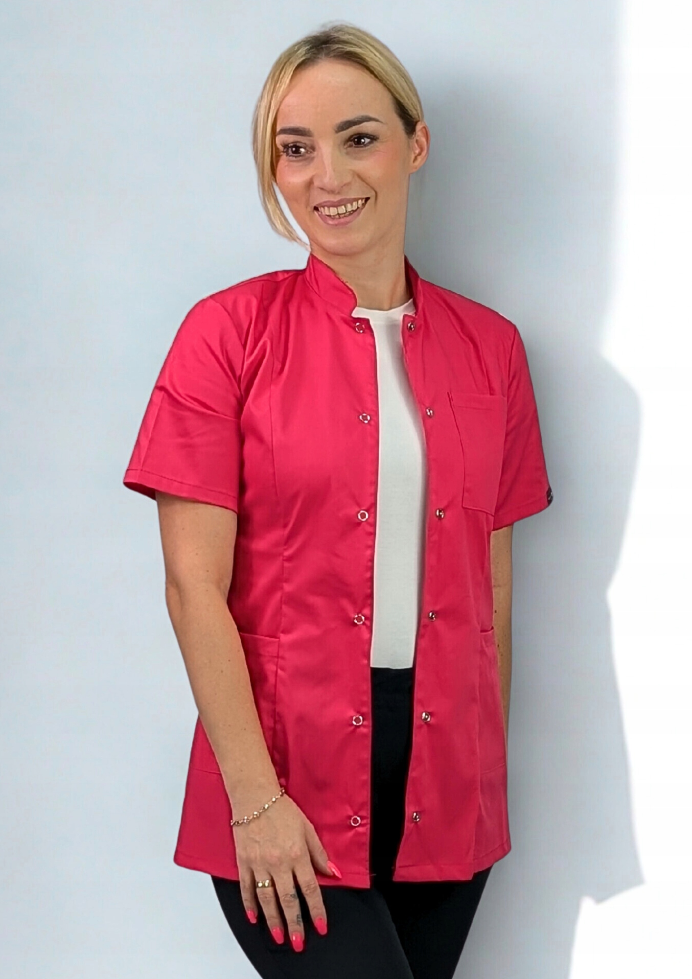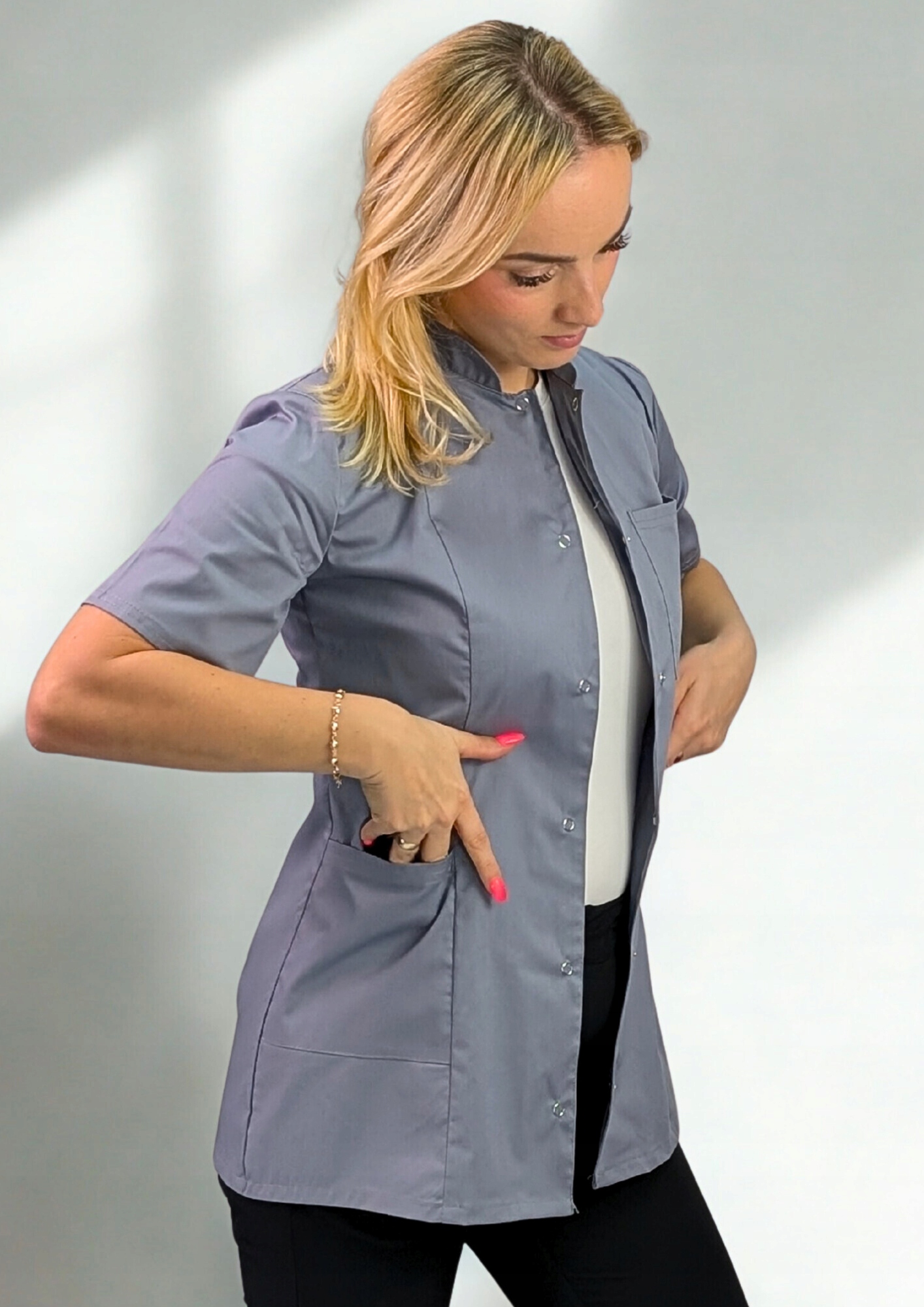 - Удлиненный рукав - обеспечивает комфорт и профессиональный вид, идеально подходит для работы в медицинских и косметических салонах.