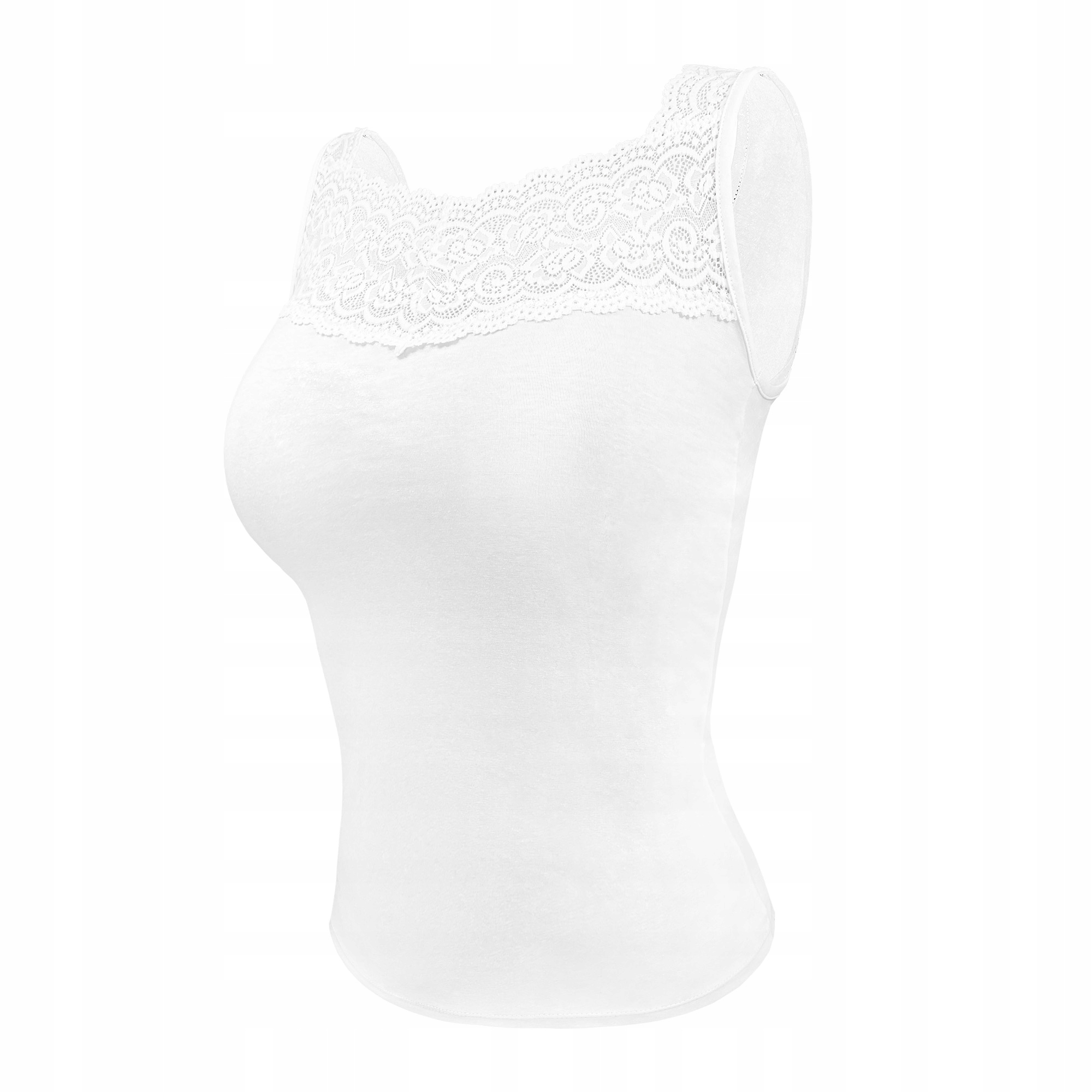 Женская майка на широких бретелях, очень удобная. Футболка имеет кружевную отделку, что придает ей элегантный вид. Он сочетается с любым предметом одежды.