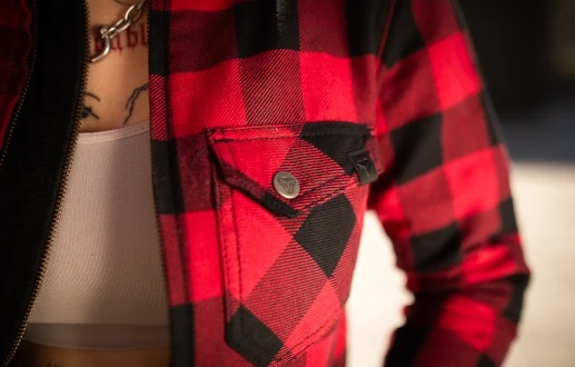 - Материал: фланель с усилением DuPont™ Kevlar®, известным своей высокой устойчивостью к растяжению и истиранию.